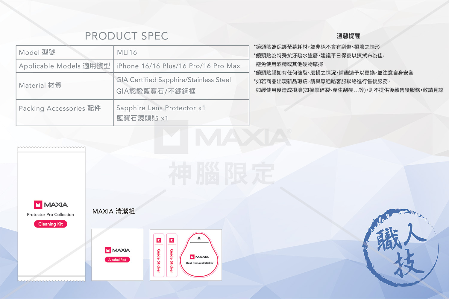 【MAXIA】iPhone 16 Pro & Pro Max GIA 認證藍寶石不鏽鋼保護鏡頭貼-炫彩(i16 Pro&Pro Max)