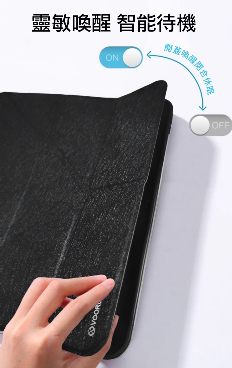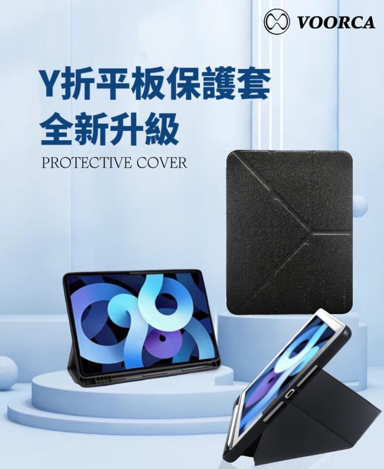 VOORCA Fickle for iPad 10 /10.9吋(2022)專用 鋼絲紋Y折側掀皮套-黑