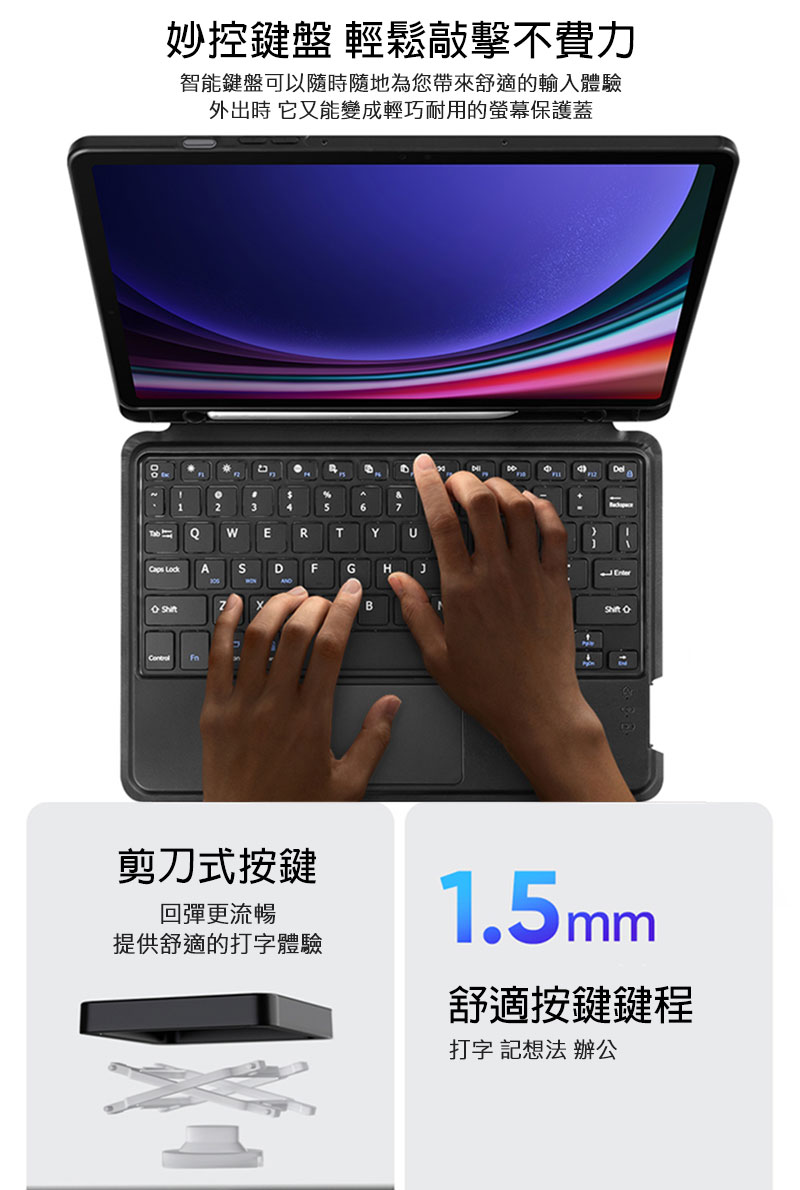 .剪刀式結構按鍵,回彈更流暢,1.5mm 鍵程,手感絕佳