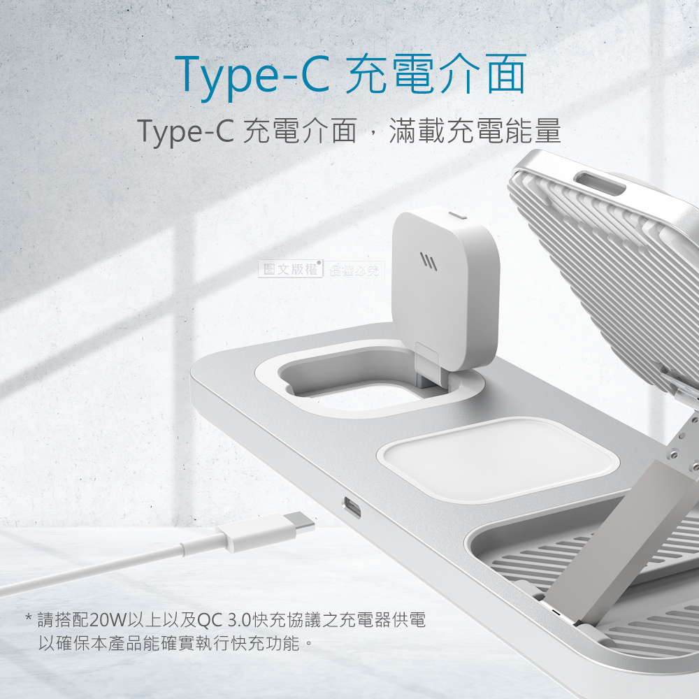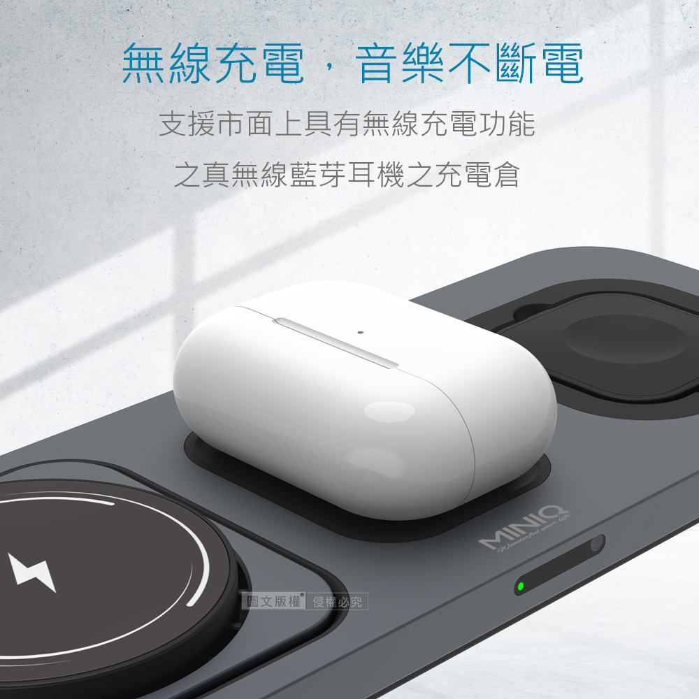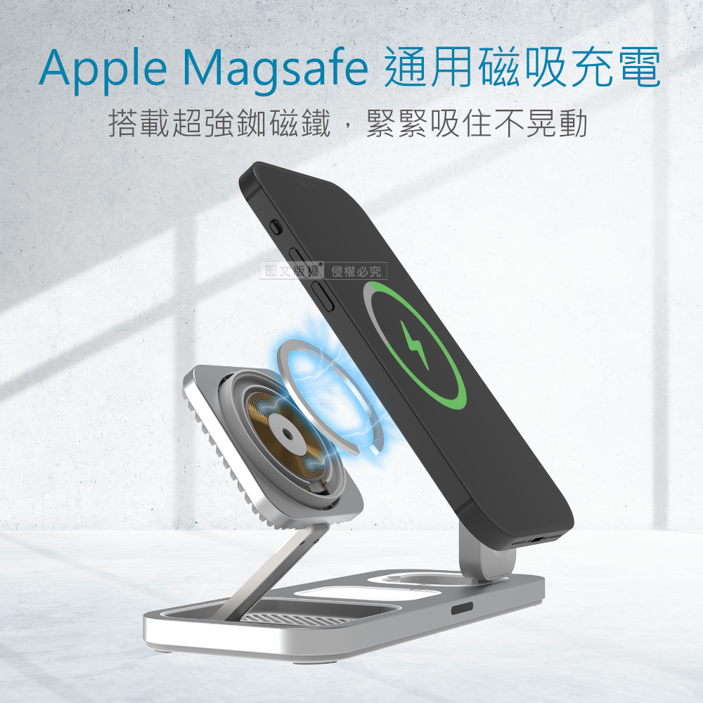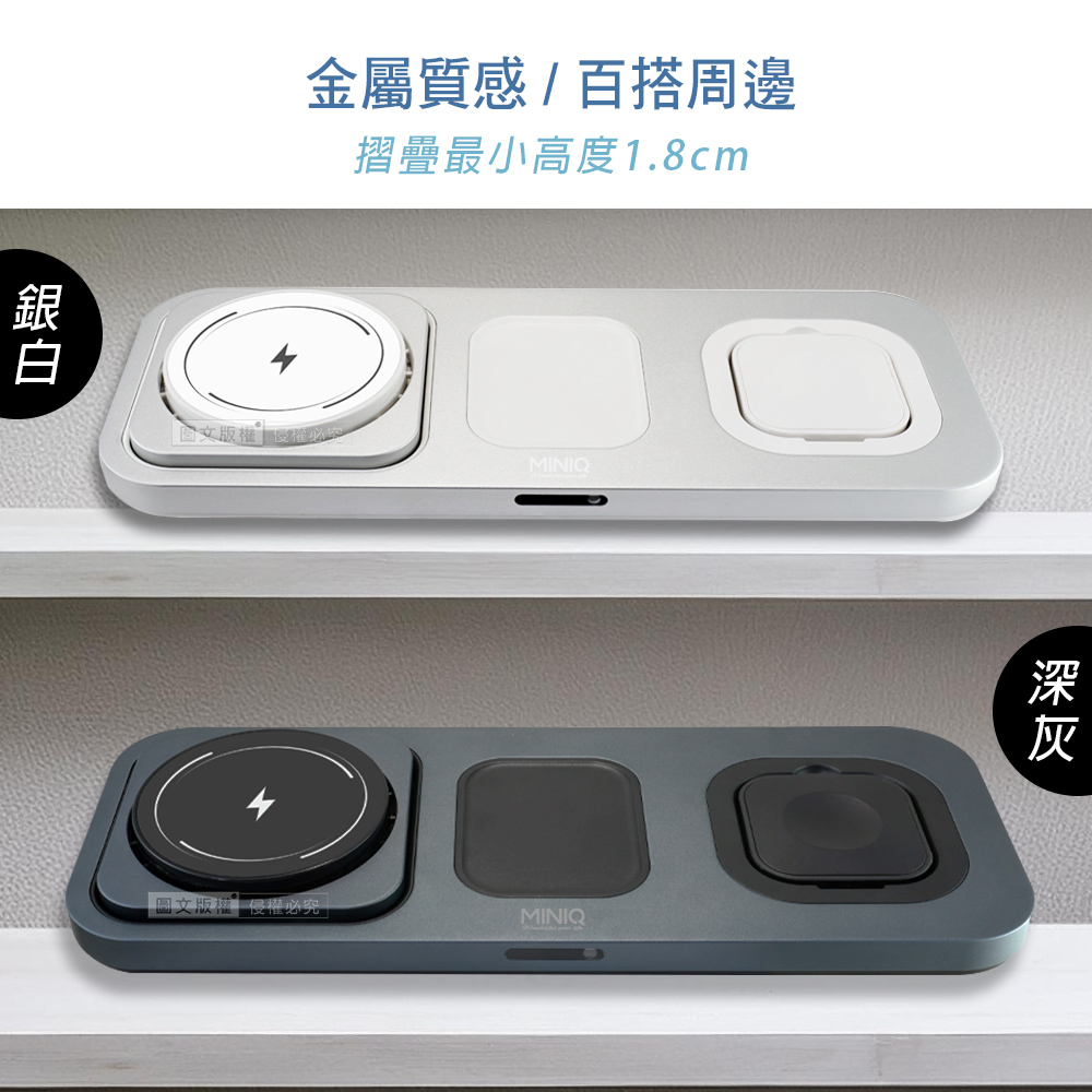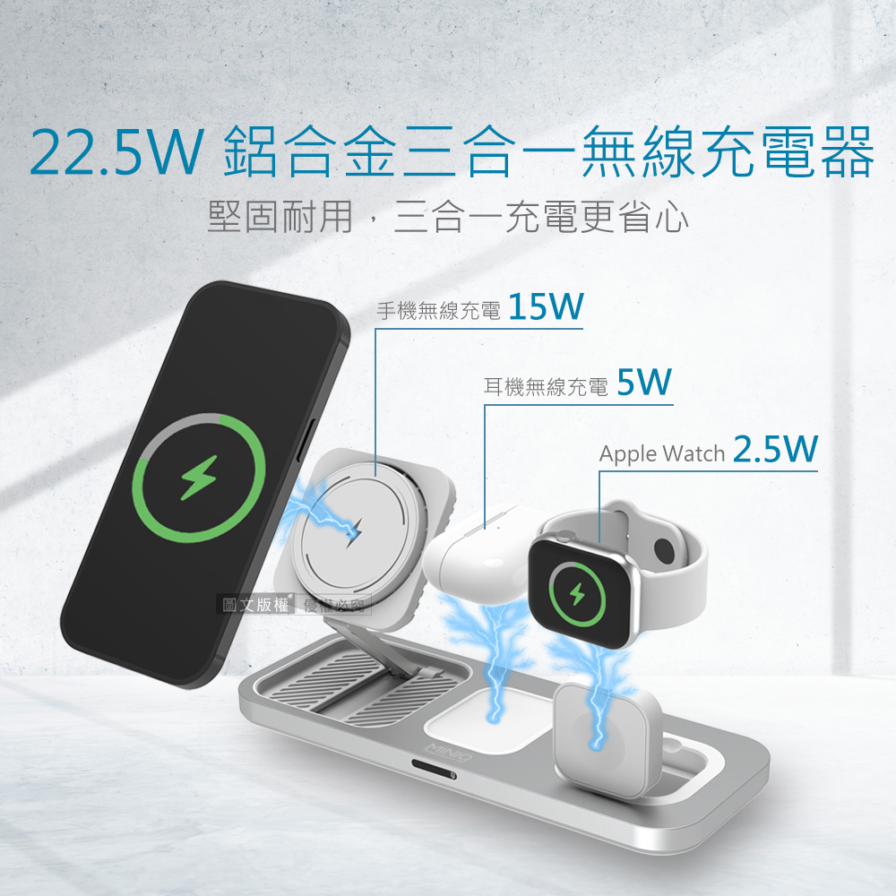 MINIQ 急速22.5W 三合一鋁合金磁吸無線充電座 充電器套組 iPhone/Watch/Airpods(銀白)