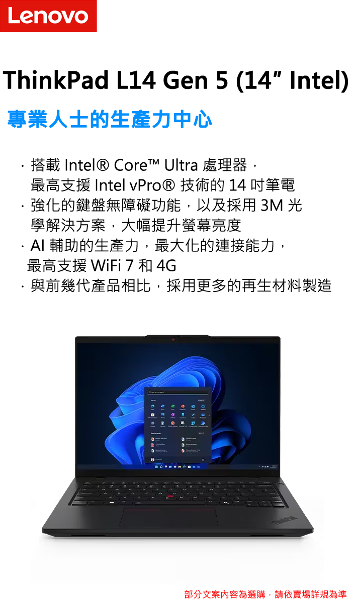 《Lenovo 聯想》ThinkPad L14 Gen 5(14吋WUXGA/Ultra 5 125H/16G+16G/512G PCIe SSD/特仕版)