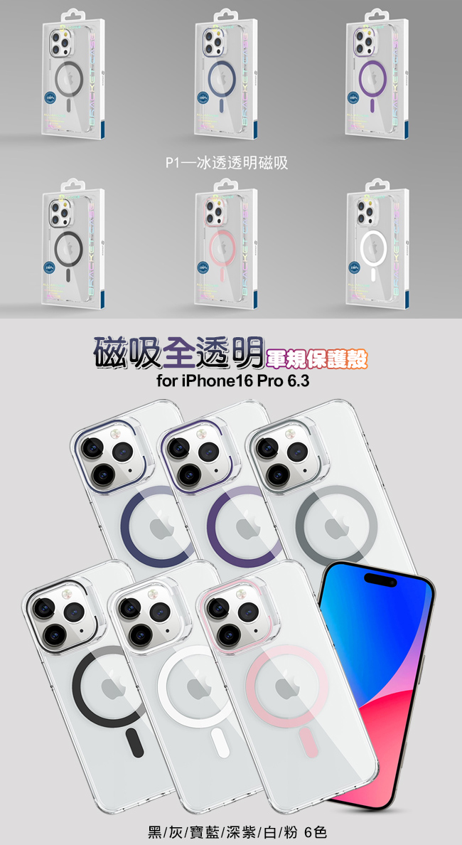 CITY BOSS for iPhone16 Pro 6.3 磁吸全透明軍規保護殼-黑