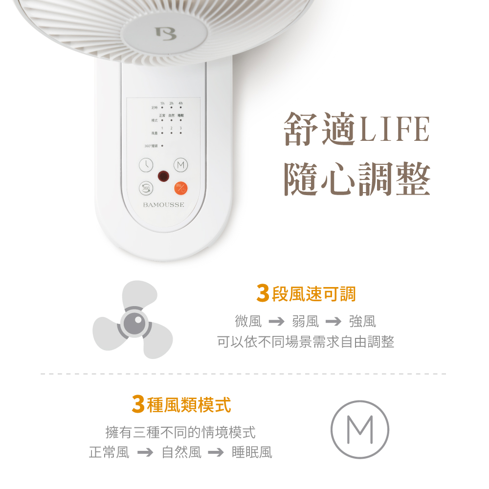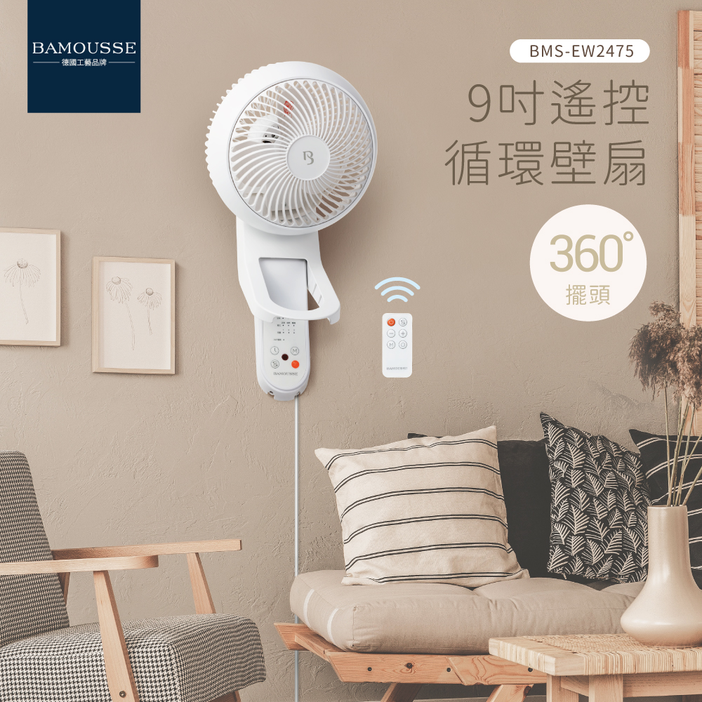 【巴慕斯 BAMOUSSE】360度擺頭9吋遙控循環壁扇 BMS-EW2475