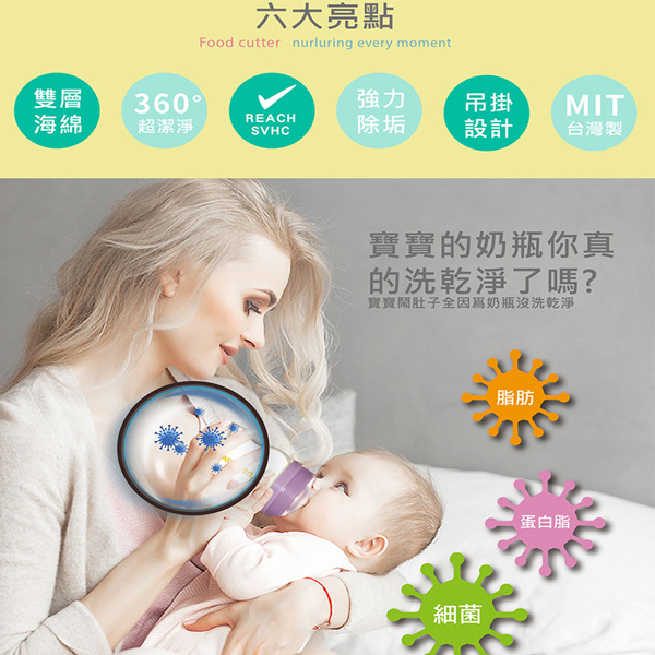 嚴選高密度海綿,質地柔軟細緻,不易刮傷奶瓶。