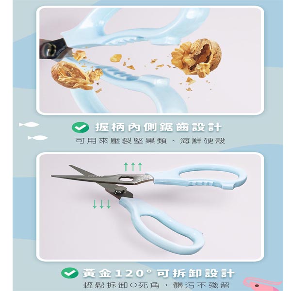 日本進口420不鏽鋼鋼材,極緻兩段刃刀面,食物好剪不易沾黏。