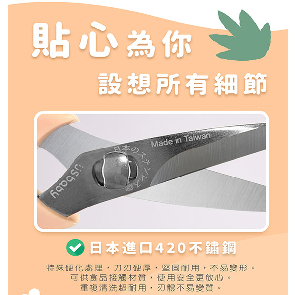 日本進口420不鏽鋼鋼材極緻兩段刃刀面食物好剪不易沾黏