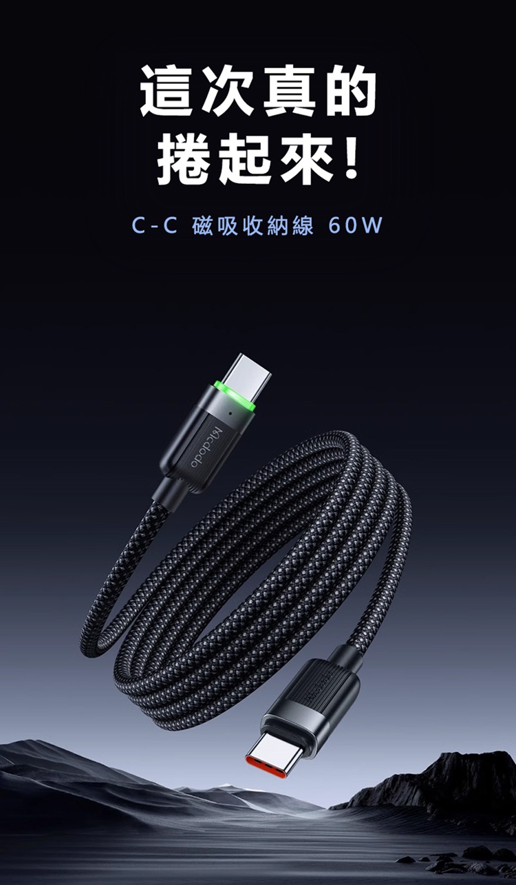 產品名稱:磁吸收納數據線C to C 60W