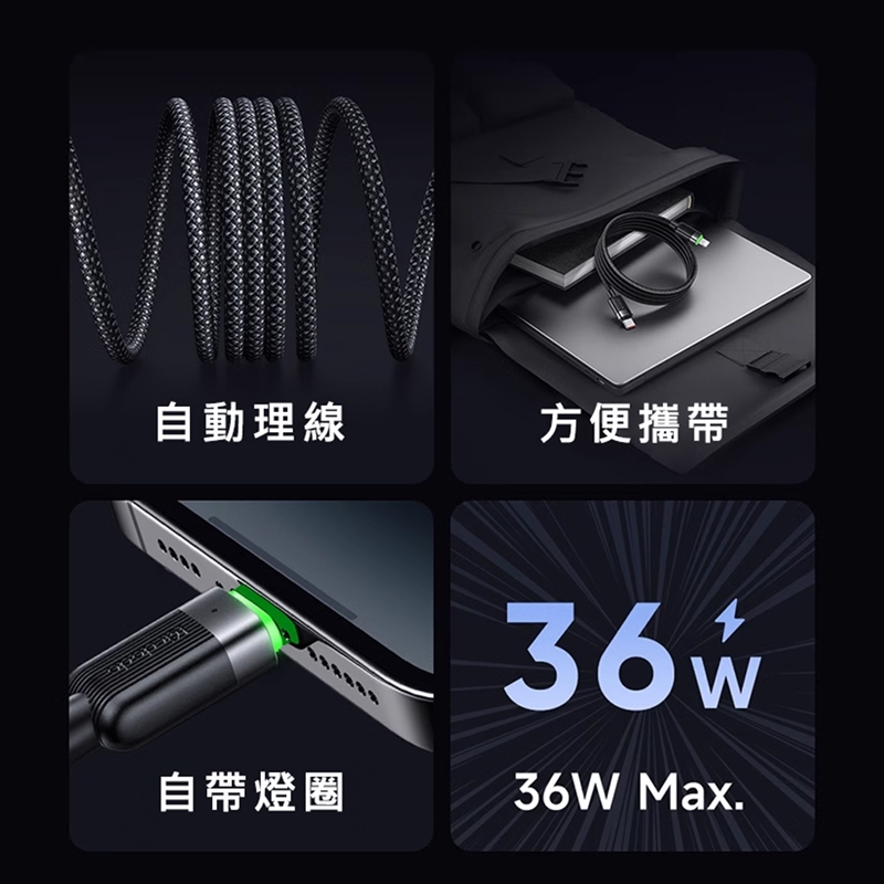 產品名稱:磁吸收納數據線C to L 36W
