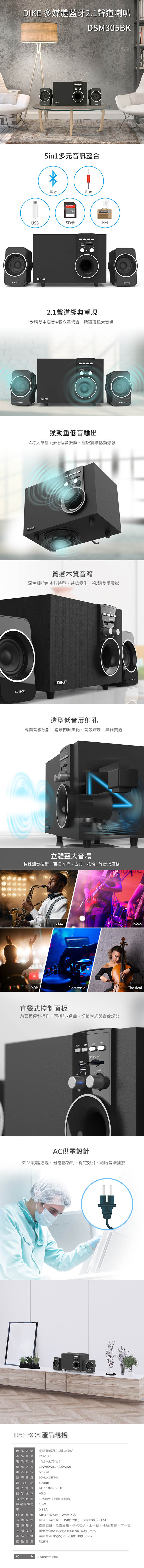 DIKE 多媒體藍牙2.1聲道喇叭 DSM305BK