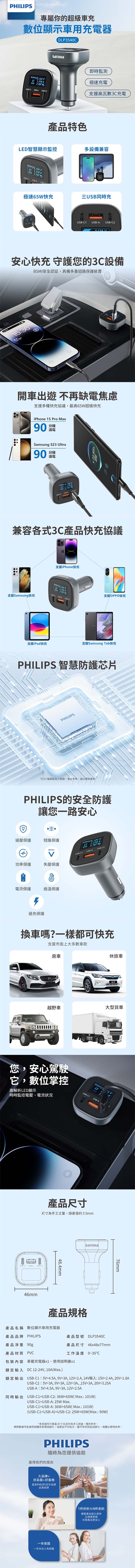 PHILIPS飛利浦 黑金剛 PD 100W 電壓顯示車充 DLP3540C