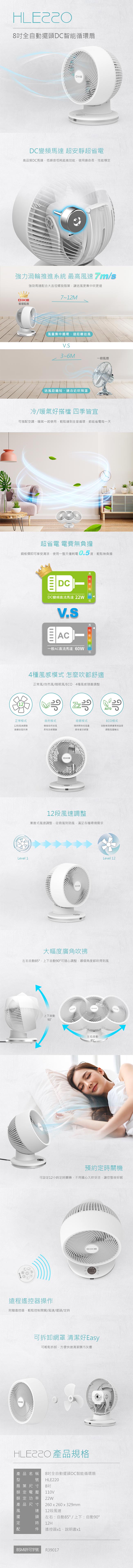 DIKE 8吋全自動擺頭DC智能循環扇 HLE220WT
