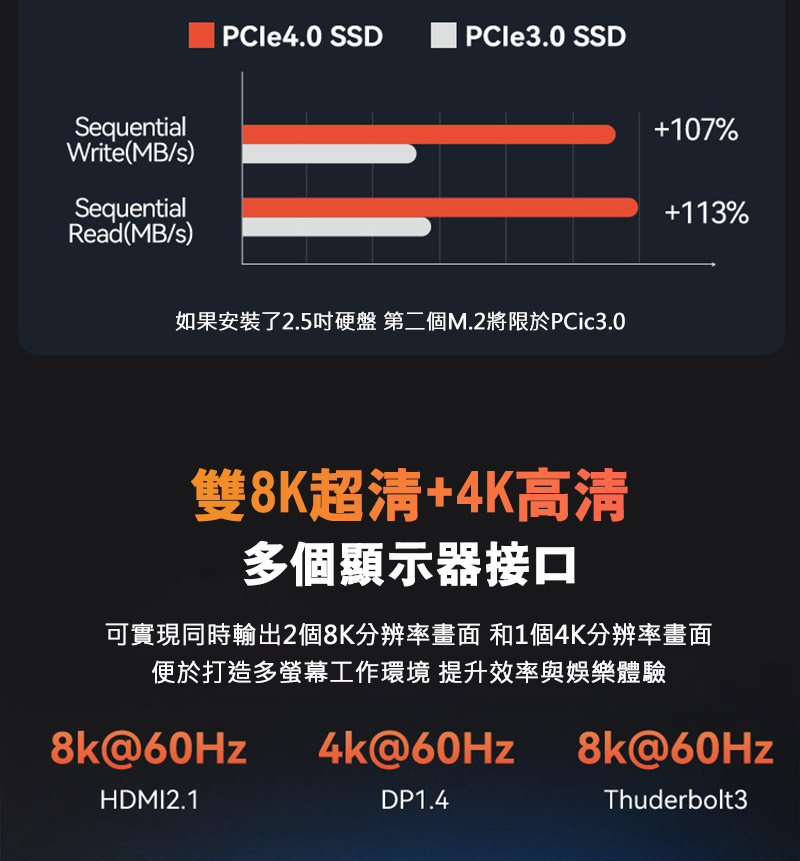 . 雙 8K 超清+4K高清,三螢幕顯示,提升工作效率