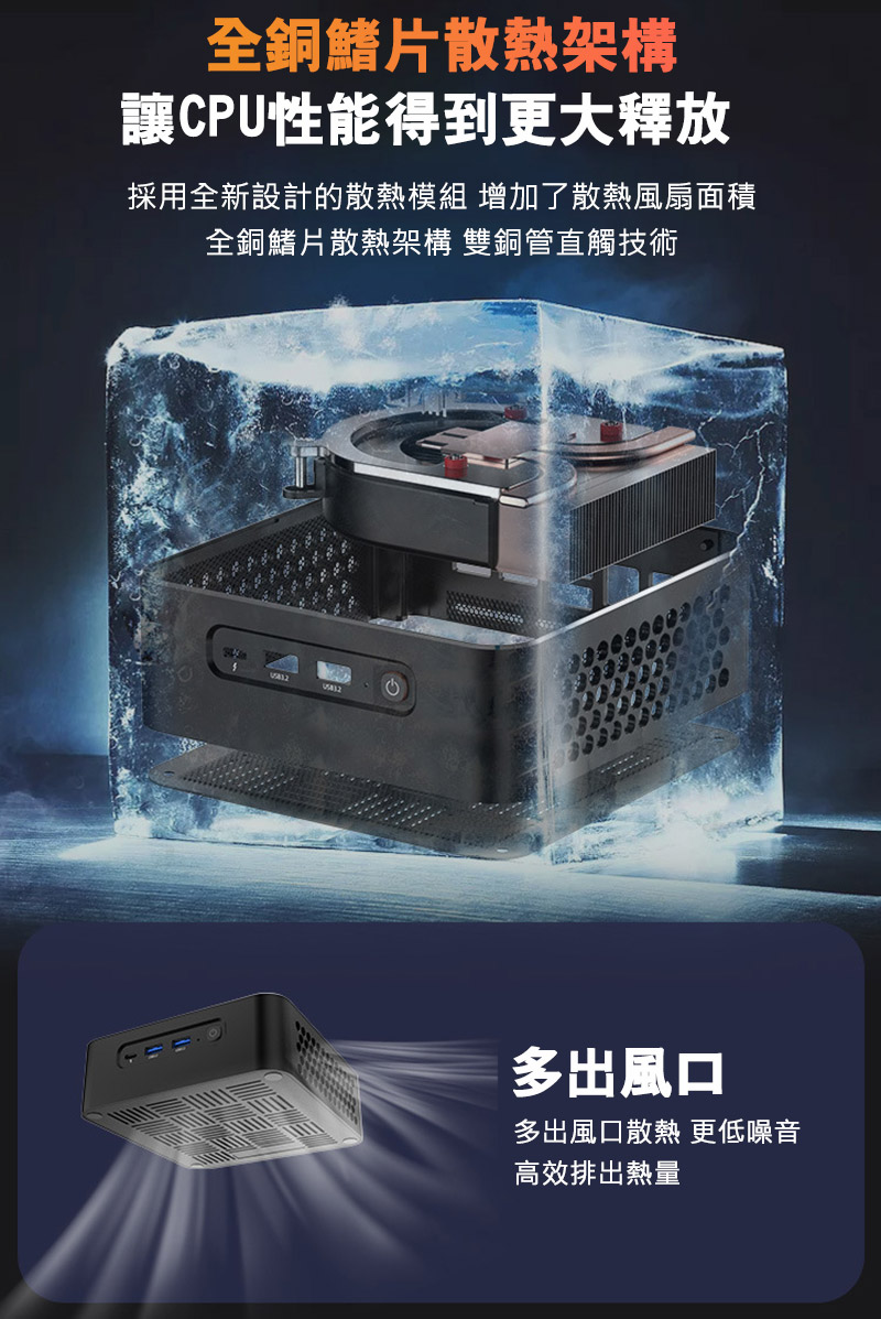 .全銅鰭片散熱架構,雙銅管直觸技術,增加散熱風扇面積,有效降溫