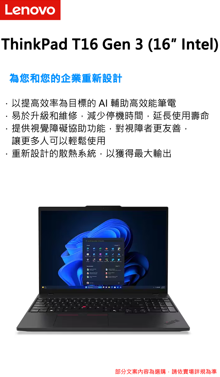 《Lenovo 聯想》ThinkPad T16 Gen 3(16吋WUXGA/Ultra 5 125H/16G/1TB PCIe SSD/Win11P/三年)
