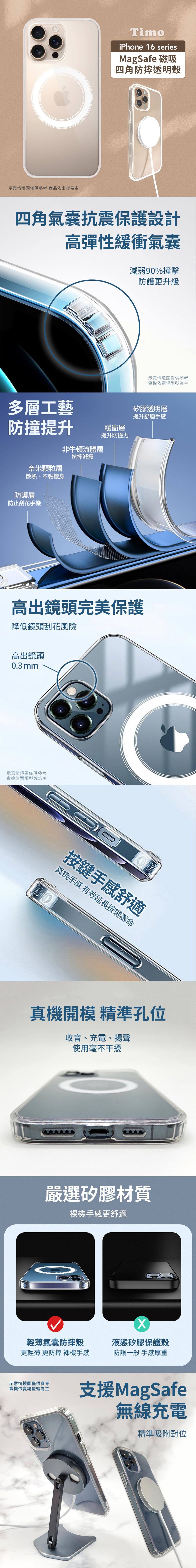 【Timo】iPhone 16 Plus 6.7吋 MagSafe磁吸防摔透明手機保護殼