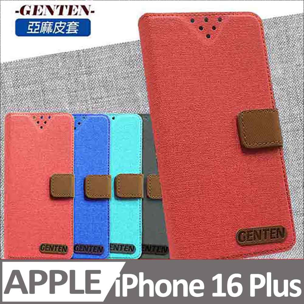 亞麻系列 APPLE iPhone 16 Plus 插卡立架磁力手機皮套 紅色