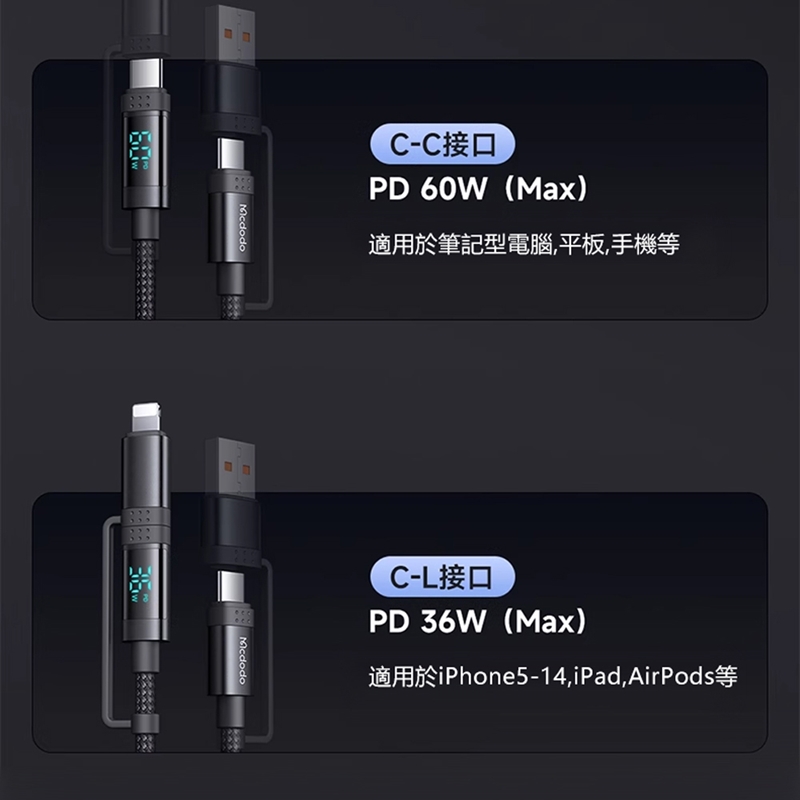 Mcdodo麥多多 60W 四合一數顯PD數據線1.2m CA199