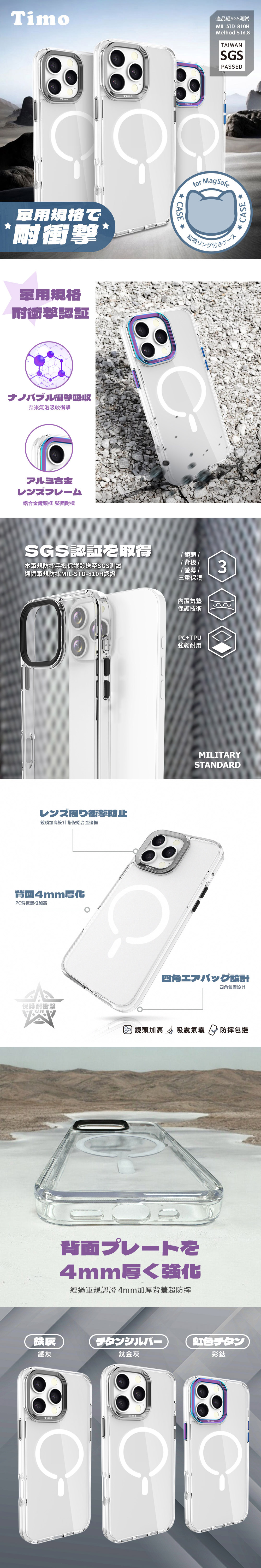 【Timo】貓丸 iPhone 16 Pro Max 6.9吋 軍規防摔磁吸透明手機殼-鈦金灰