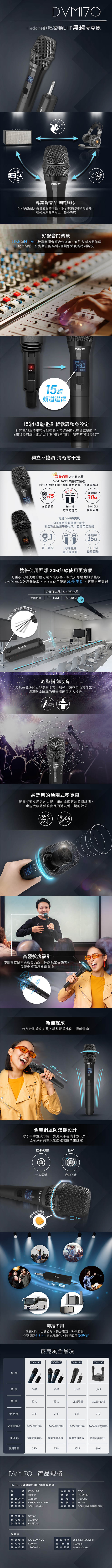 DIKE Hedone歡唱樂動UHF無線麥克風組 DVM170BK