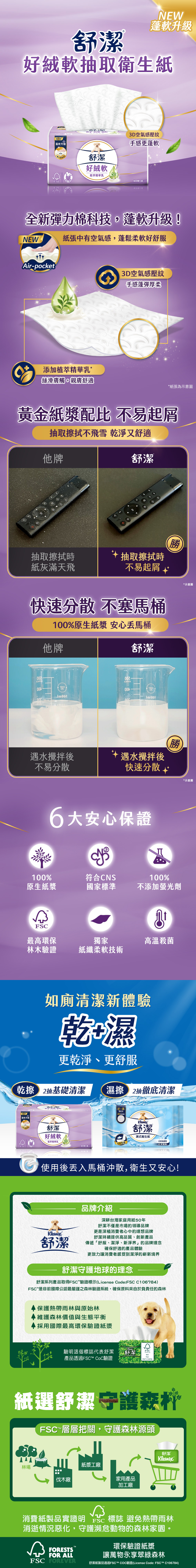 舒潔 好絨軟植萃精華乳抽取衛生紙110抽x8包x6串/箱
