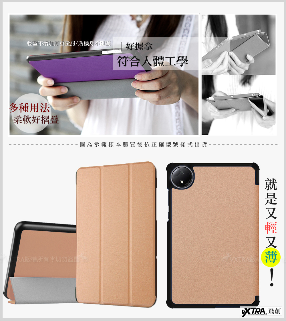 VXTRA 紅米Redmi Pad SE 8.7吋 經典皮紋三折保護套 平板皮套(品味金)