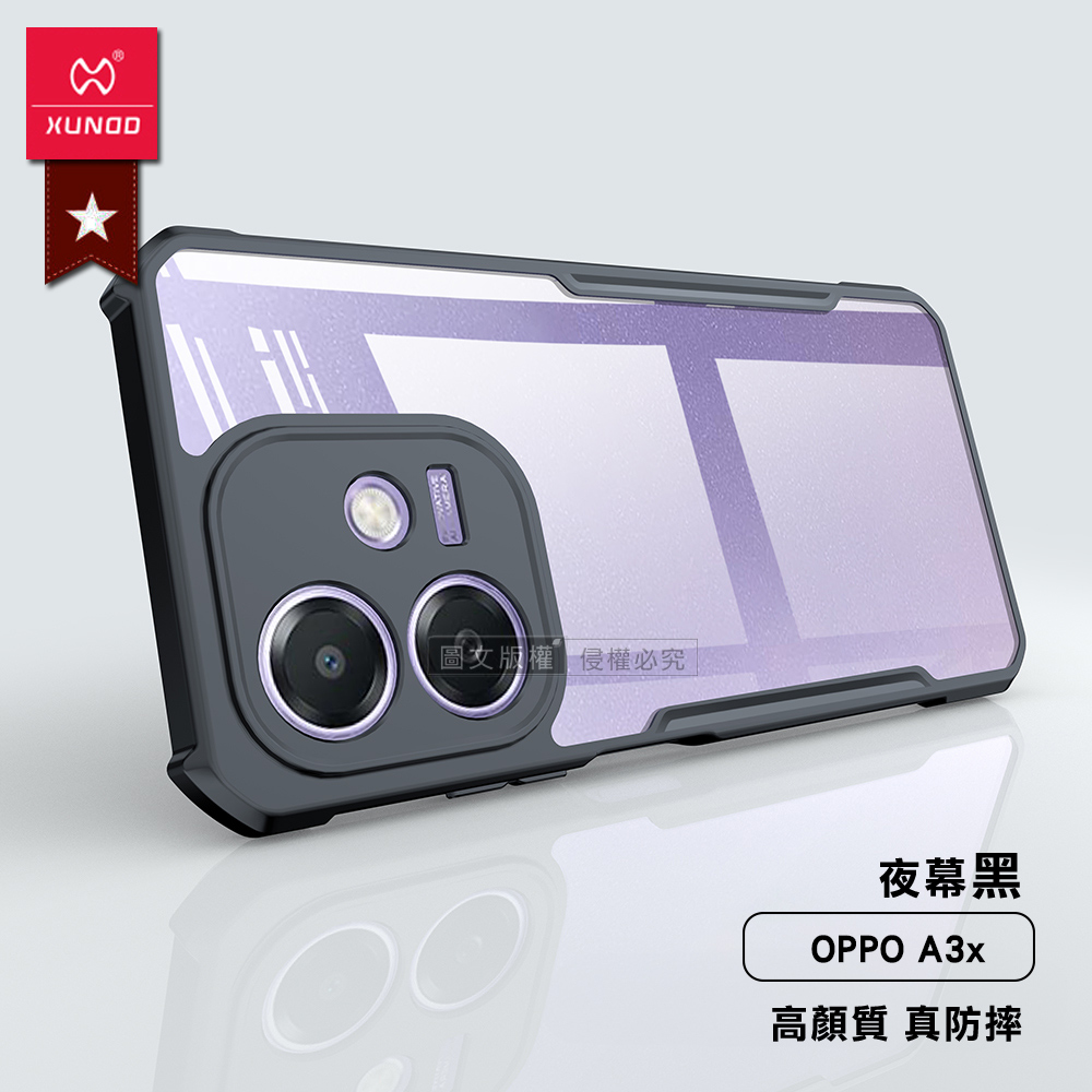 XUNDD訊迪 軍事防摔 OPPO A3x 鏡頭全包覆 清透保護殼 手機殼(夜幕黑)