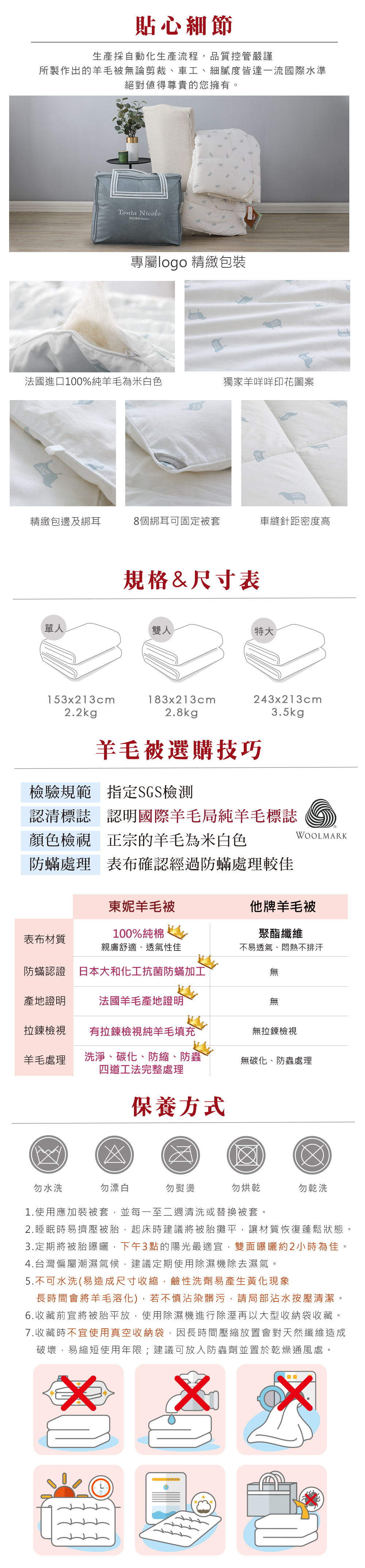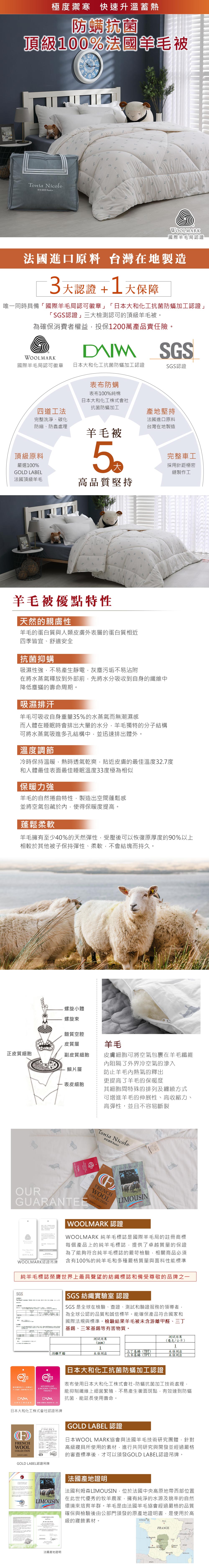【Tonia Nicole 東妮寢飾】防蹣抗菌頂級100%法國羊毛被(雙人) 2.8kg