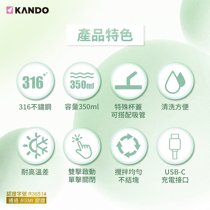 Kando 磁力攪拌杯 350ml-綠色(KB-350)