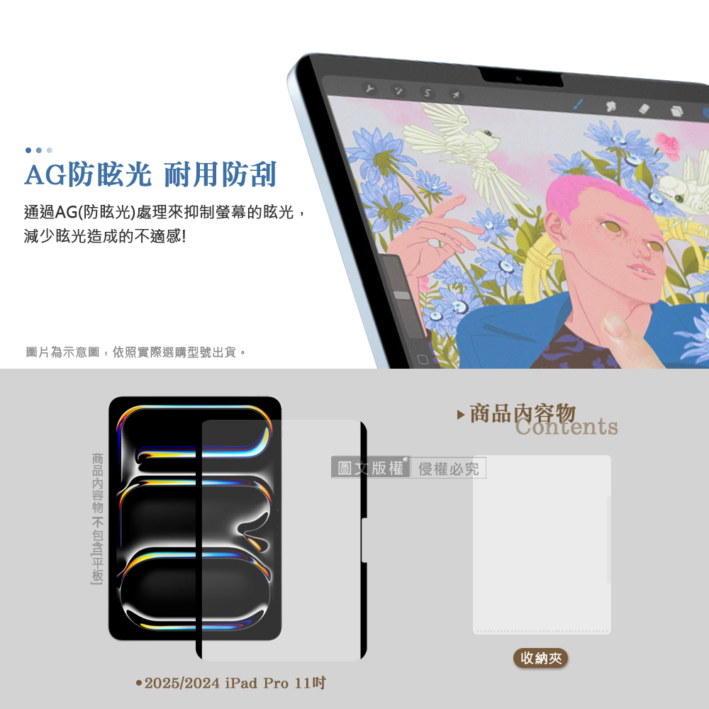Antiglare 2025/2024 iPad Pro 11吋 磁吸可拆式類紙膜 繪畫筆記專用膜保護貼