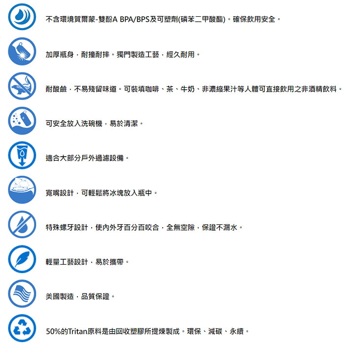 • 採用Tritan材質製作,不含環境賀爾蒙-雙酚A。