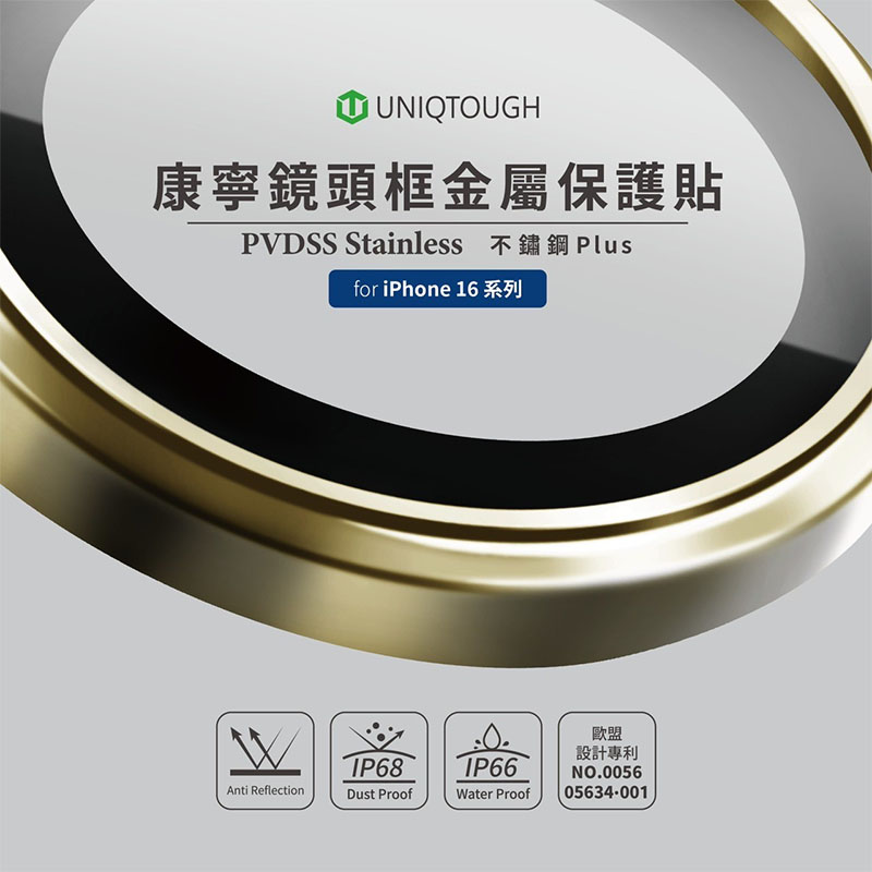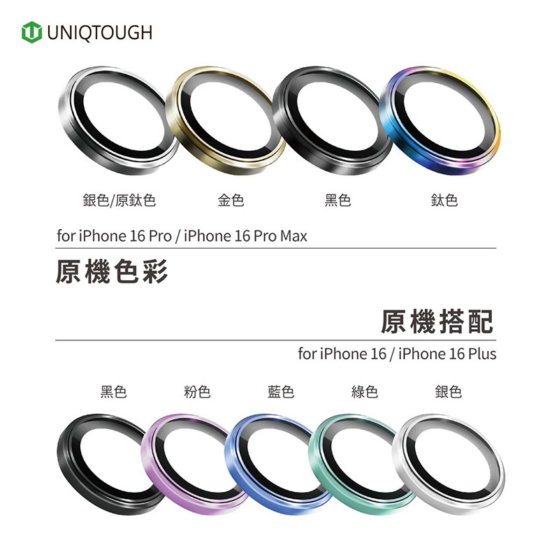 UNIQTOUGH iPhone 16 / 16 Plus PVDSS 航太鋁金屬框鏡頭保護鏡 黑色