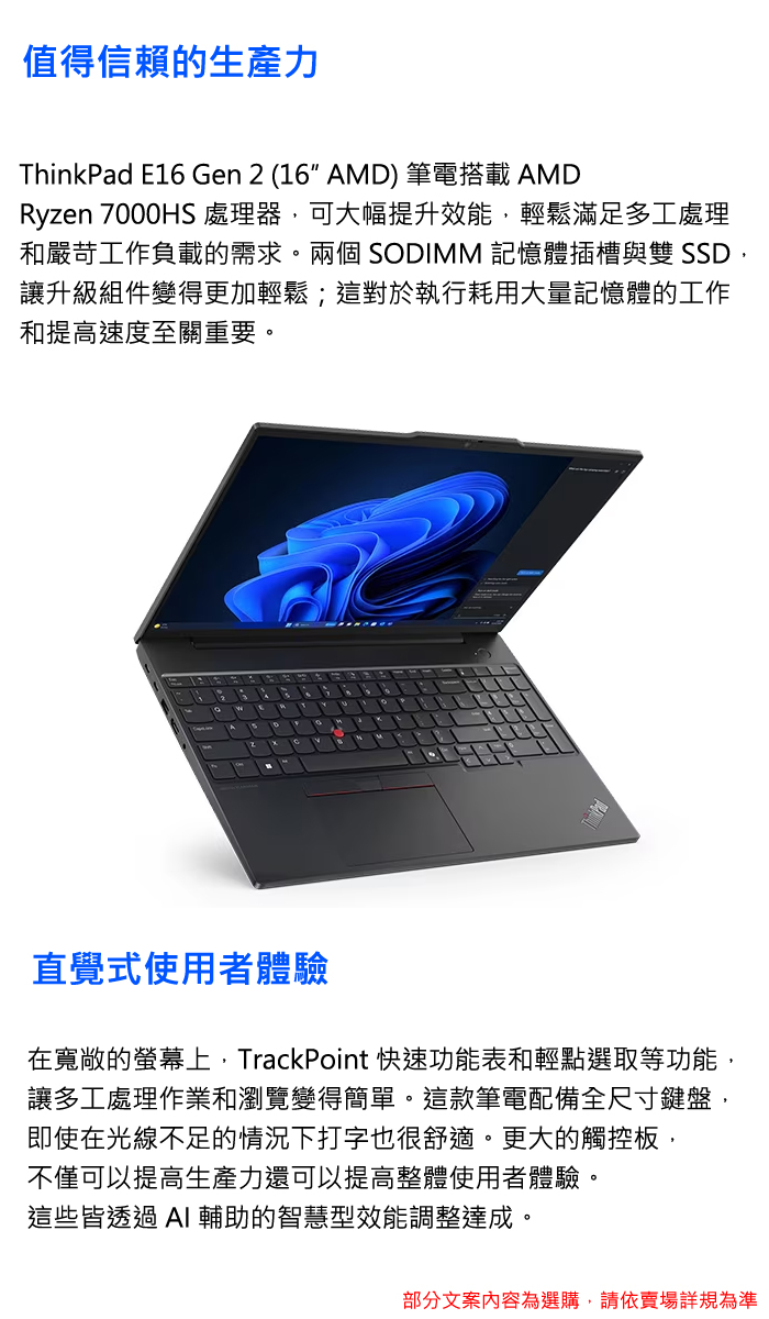 《Lenovo 聯想》ThinkPad E16 Gen 2(16吋WUXGA/R7 7735HS/16G+32G/1TB SSD/W11P/特仕版)