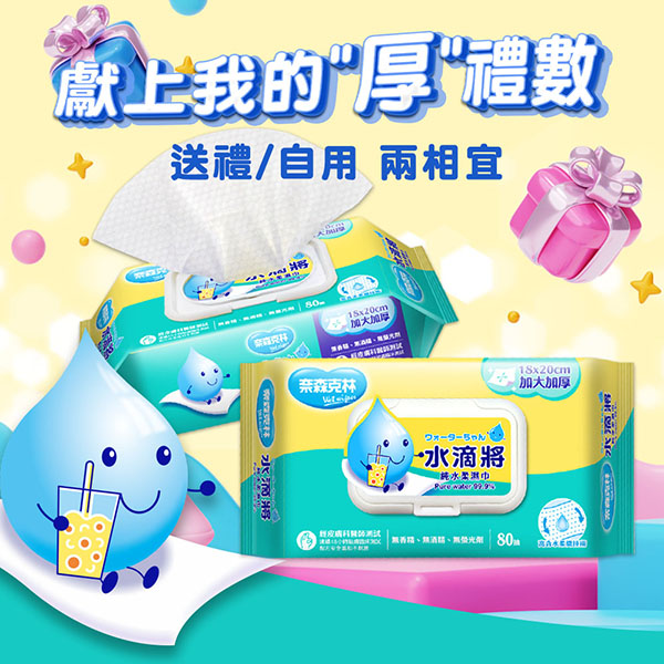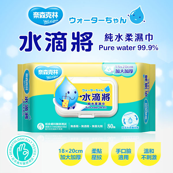 奈森克林 水滴將加大加厚純水柔濕巾(加蓋80抽)*6包