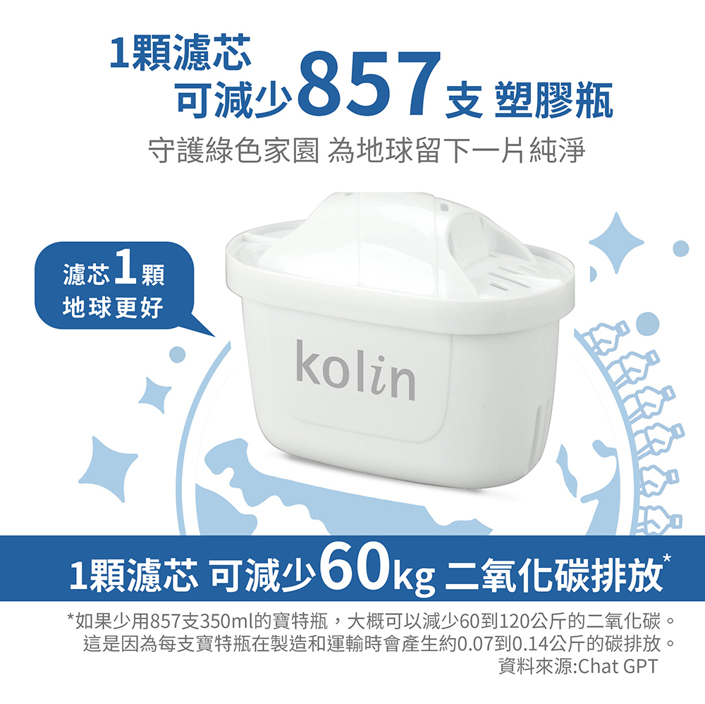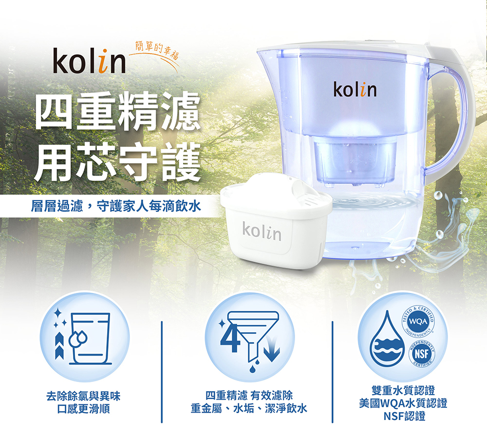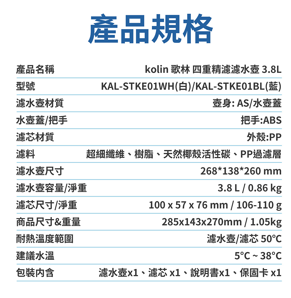 【商品名稱】Kolin 歌林 3.8L四重精濾濾水壺(內含四重濾芯*1/適用Brita)