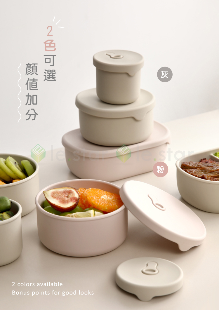 FaSoLa 食品用鉑金矽膠可微波分隔便當盒組(900ml) 分隔款 粉色