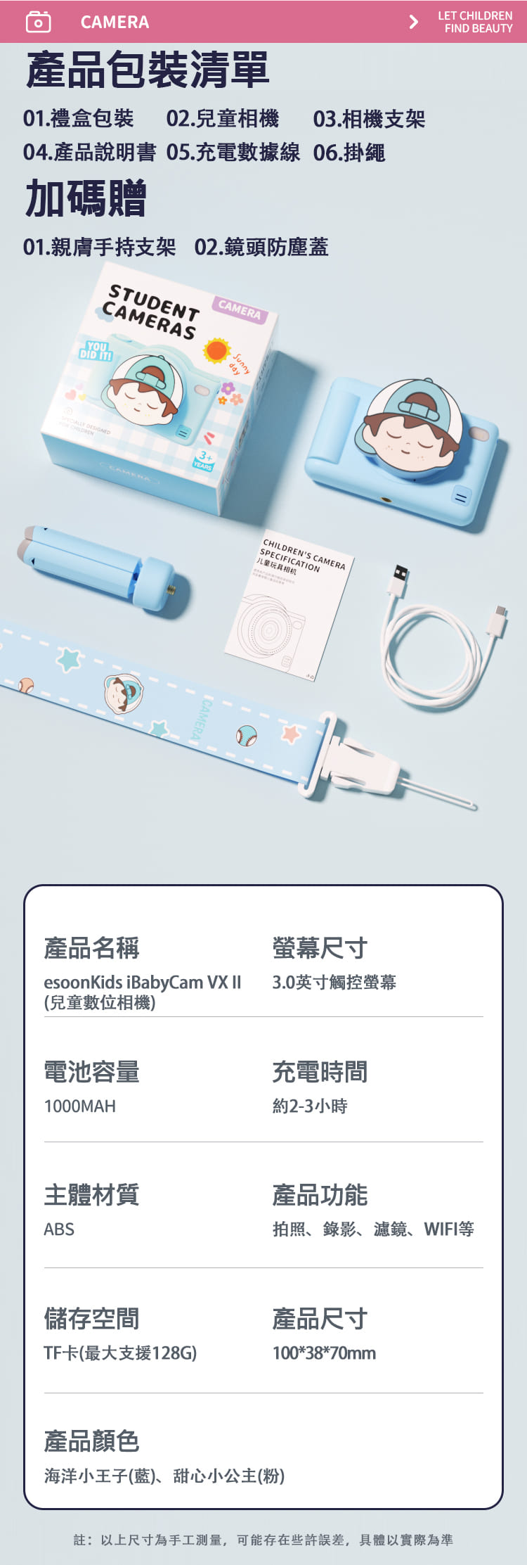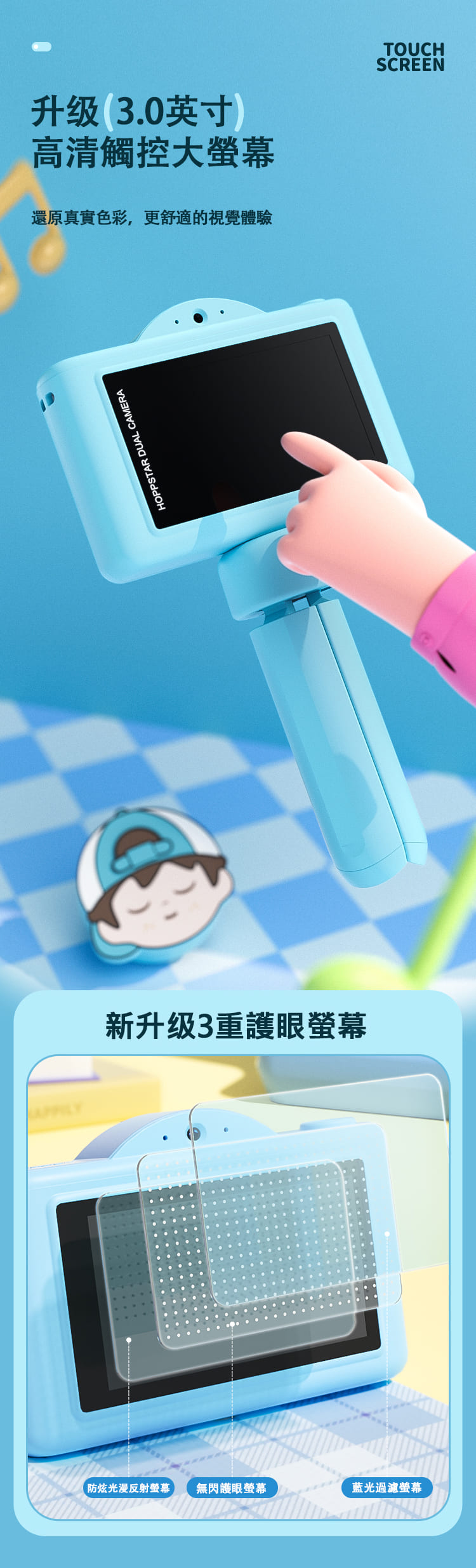 esoonKids VX II 4900萬 兒童觸控相機 3吋螢幕 WIFI 雙鏡頭【單機+保護貼+相機包】- 海洋小王子(藍)