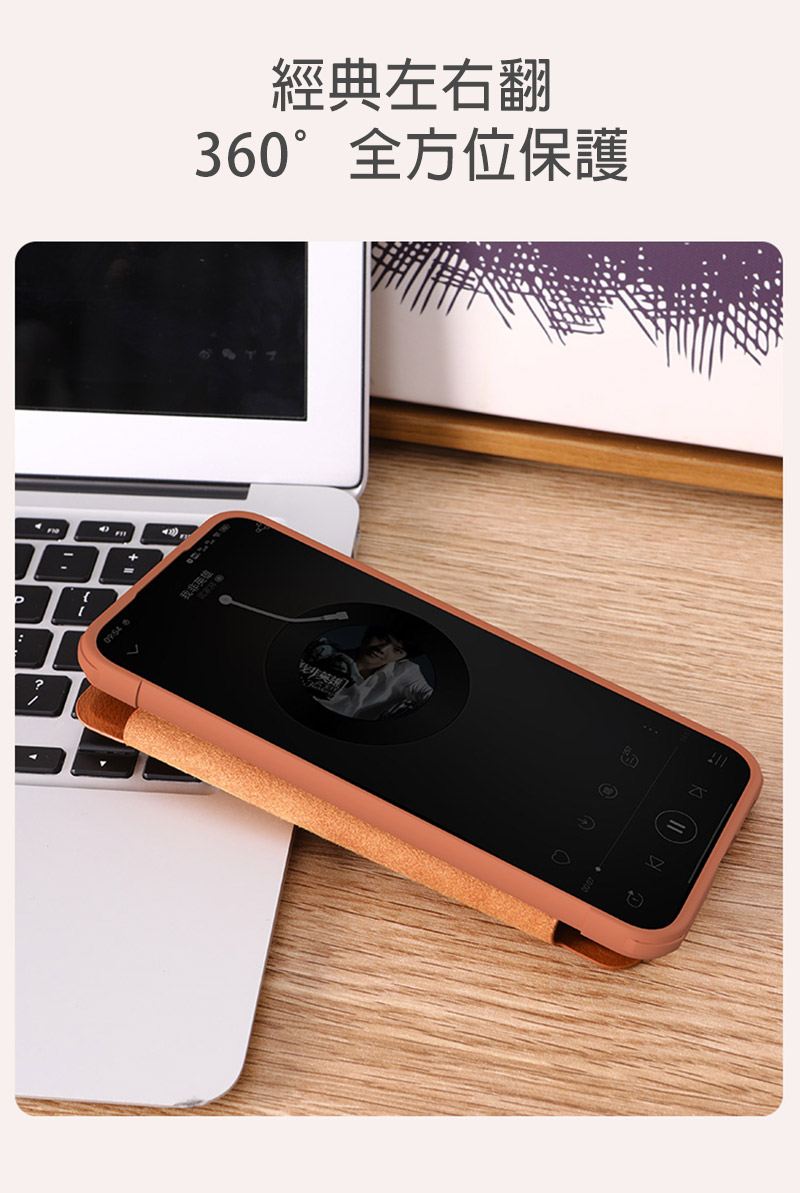 .注重實用,翻蓋式設計包裹手機全身,輕薄之餘 360°全方位保護,簡單俐落