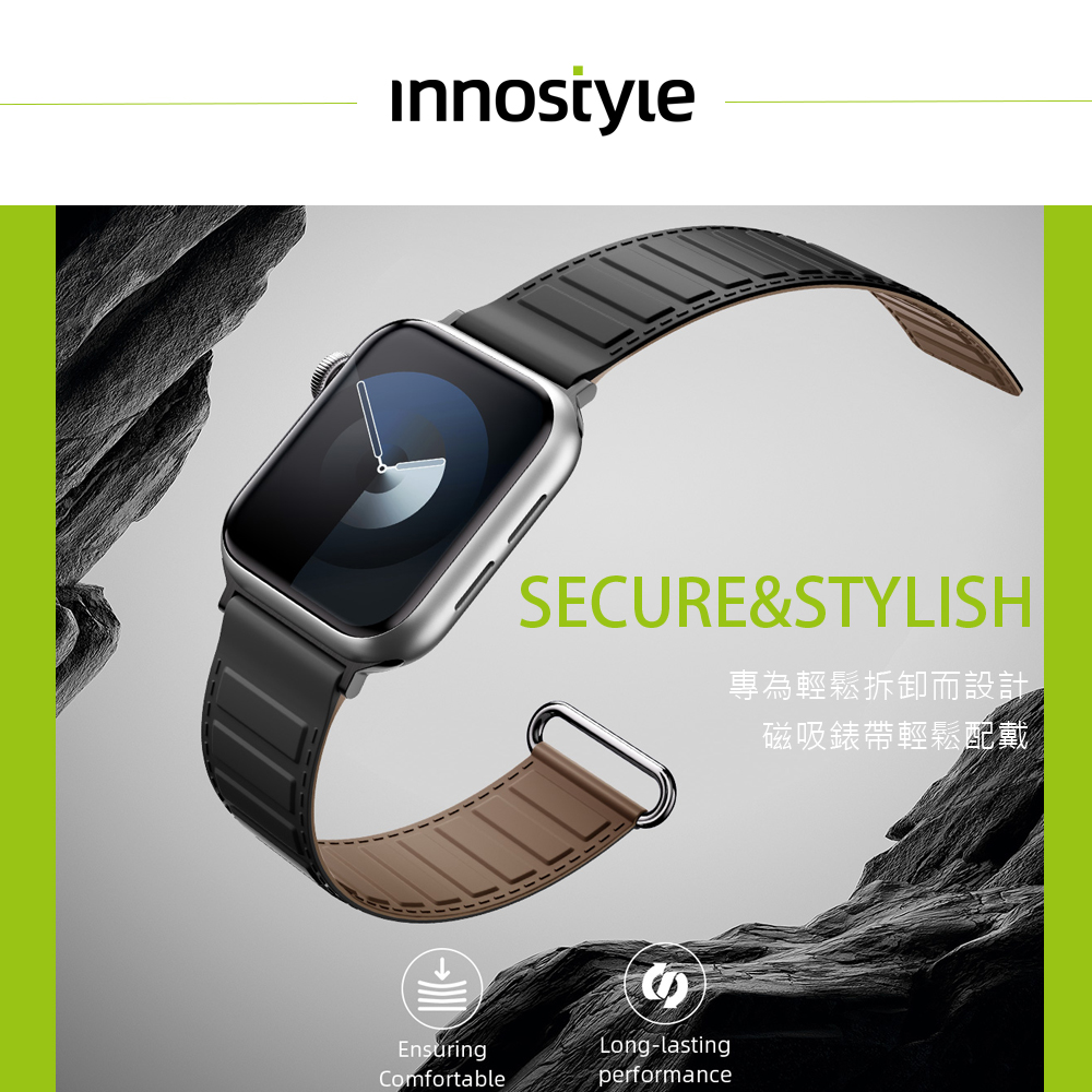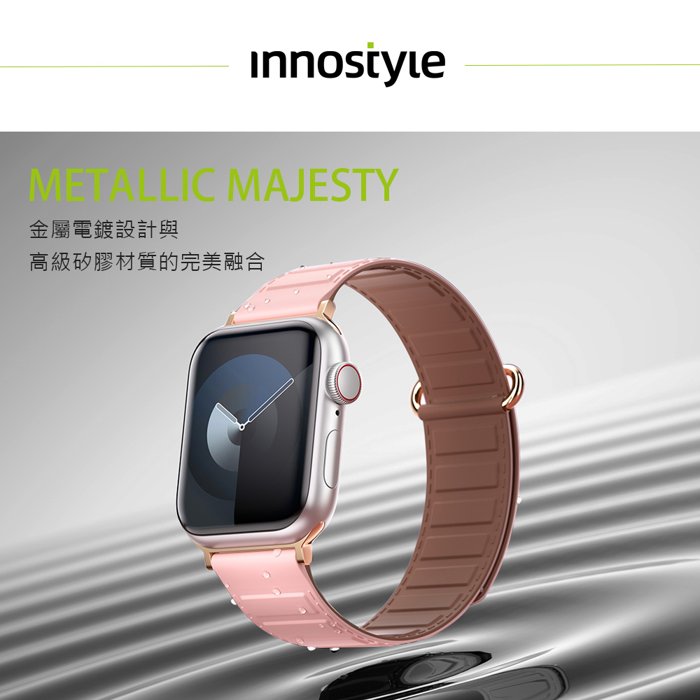 innostyle MagFlex 200 Apple Watch/Ultra/SE 磁吸撞色扣環矽膠錶帶 44/45/46/49mm通用 粉色
