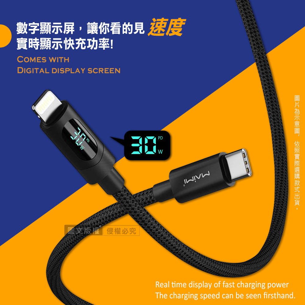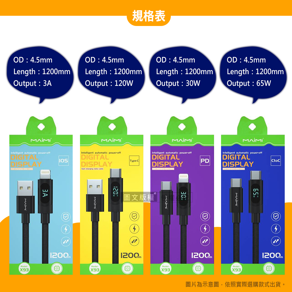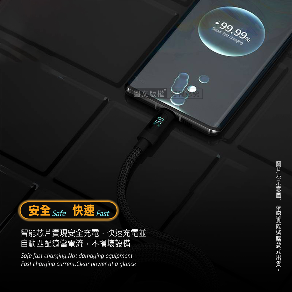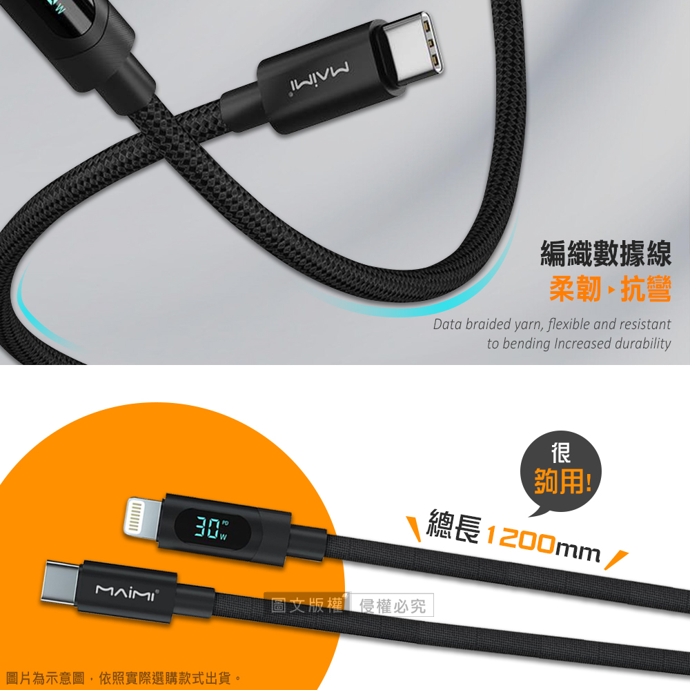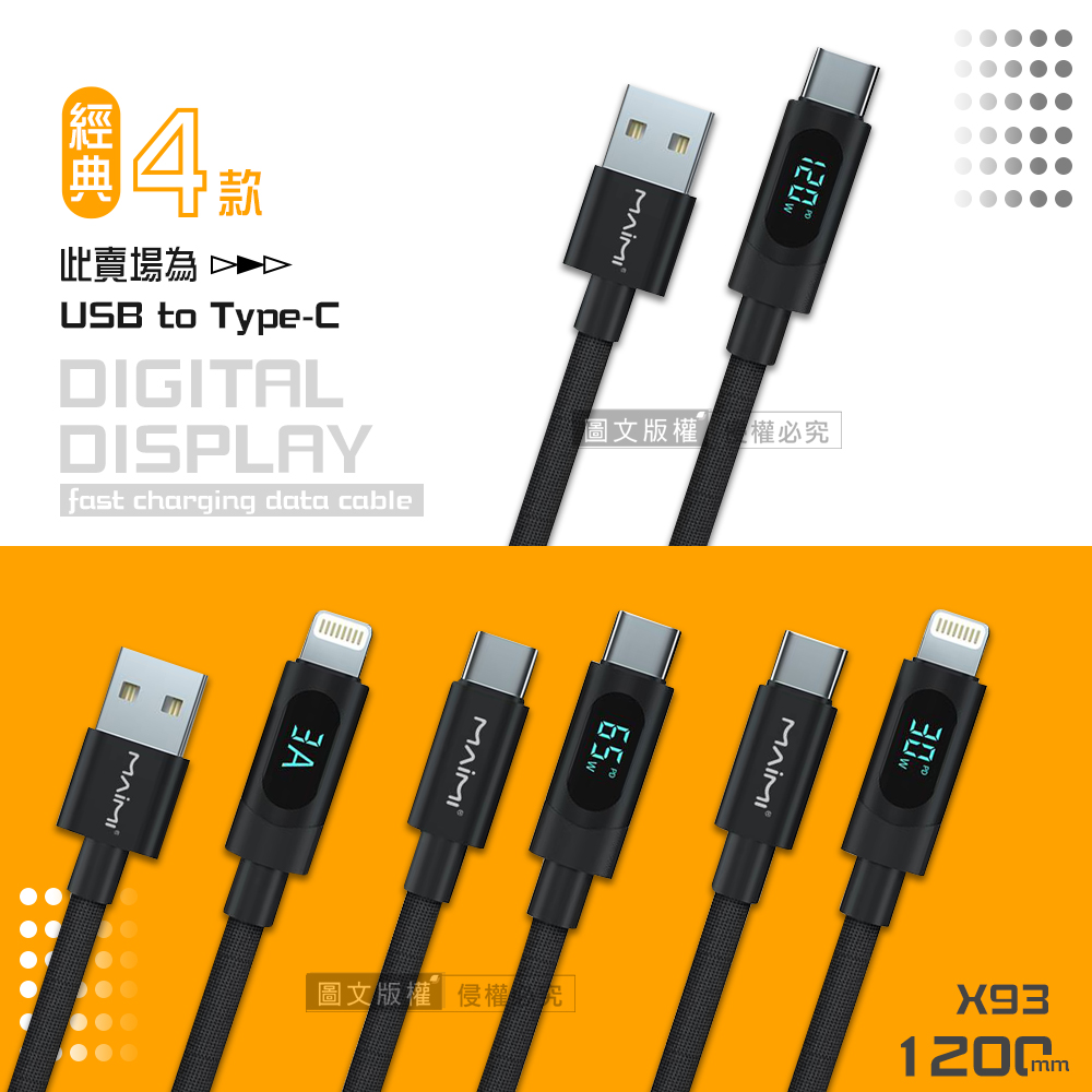 Maimi 智慧數顯編織快充線 USB to Type-C 手機充電傳輸線(1200mm)