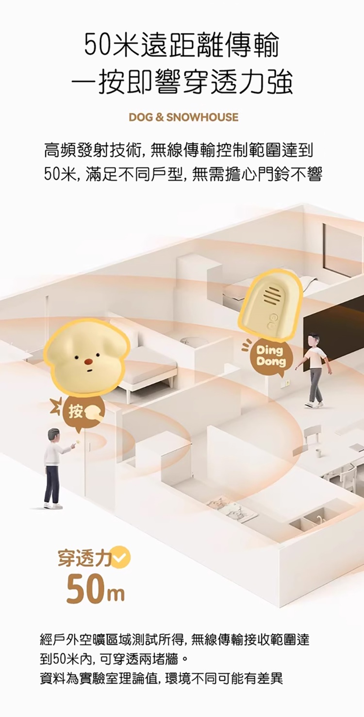 內容物:旺來門鈴發射器,雪屋室內接收器