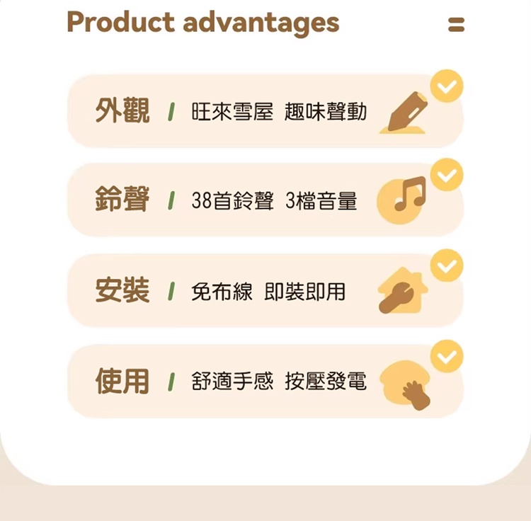 品名:旺來自發電無線門鈴