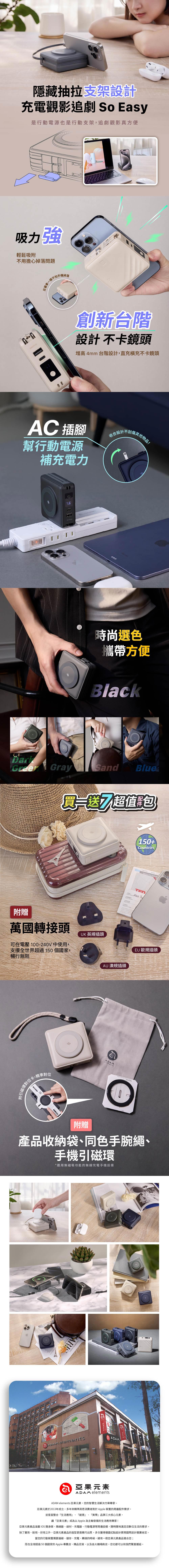 【亞果元素】GRAVITY X5 五合一萬用磁吸行動電源 15000mAh(C+L)(有標示Wh)-墨綠