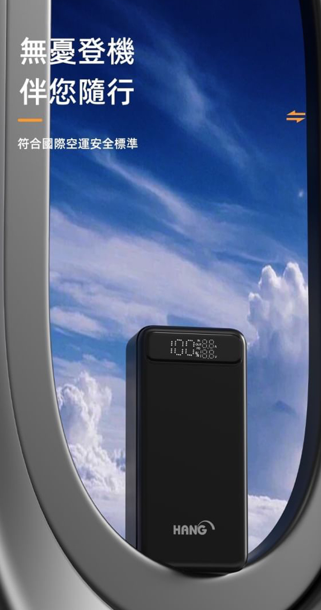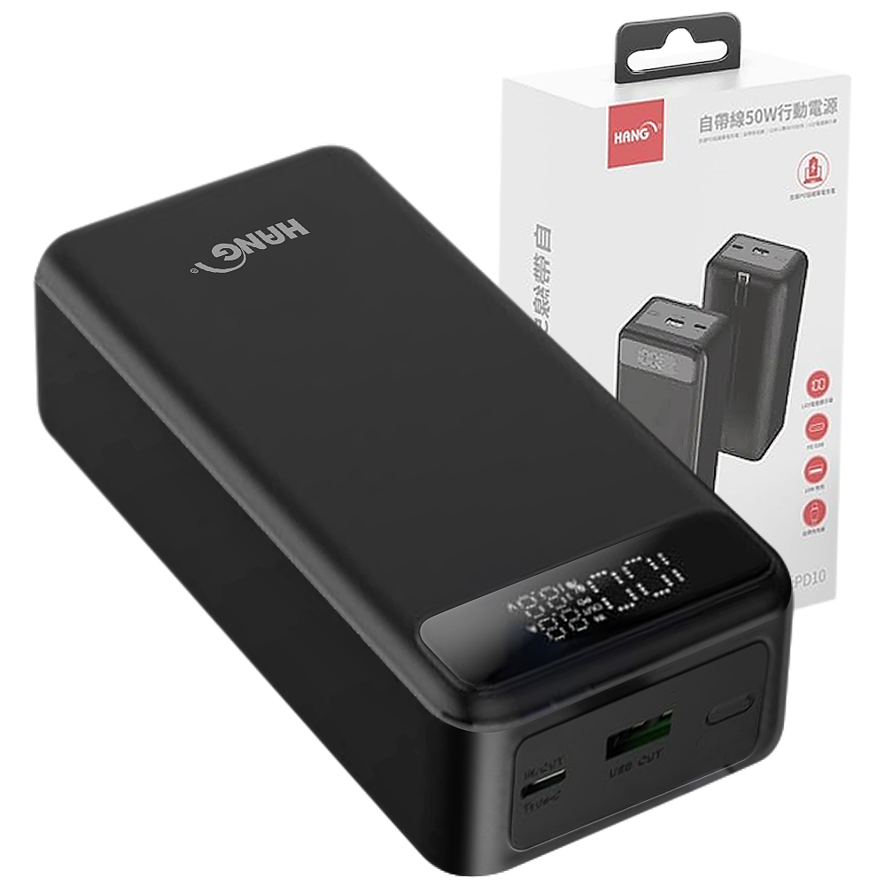 HANG PD10 自帶線行充 BSMI商檢認證 口袋行動 30000mAh 行動電源 蘋果 TYPEC 雙向快充-黑