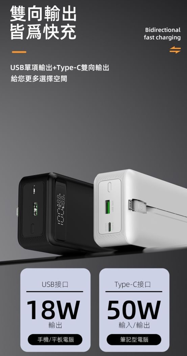 自帶Type-C線PD50W