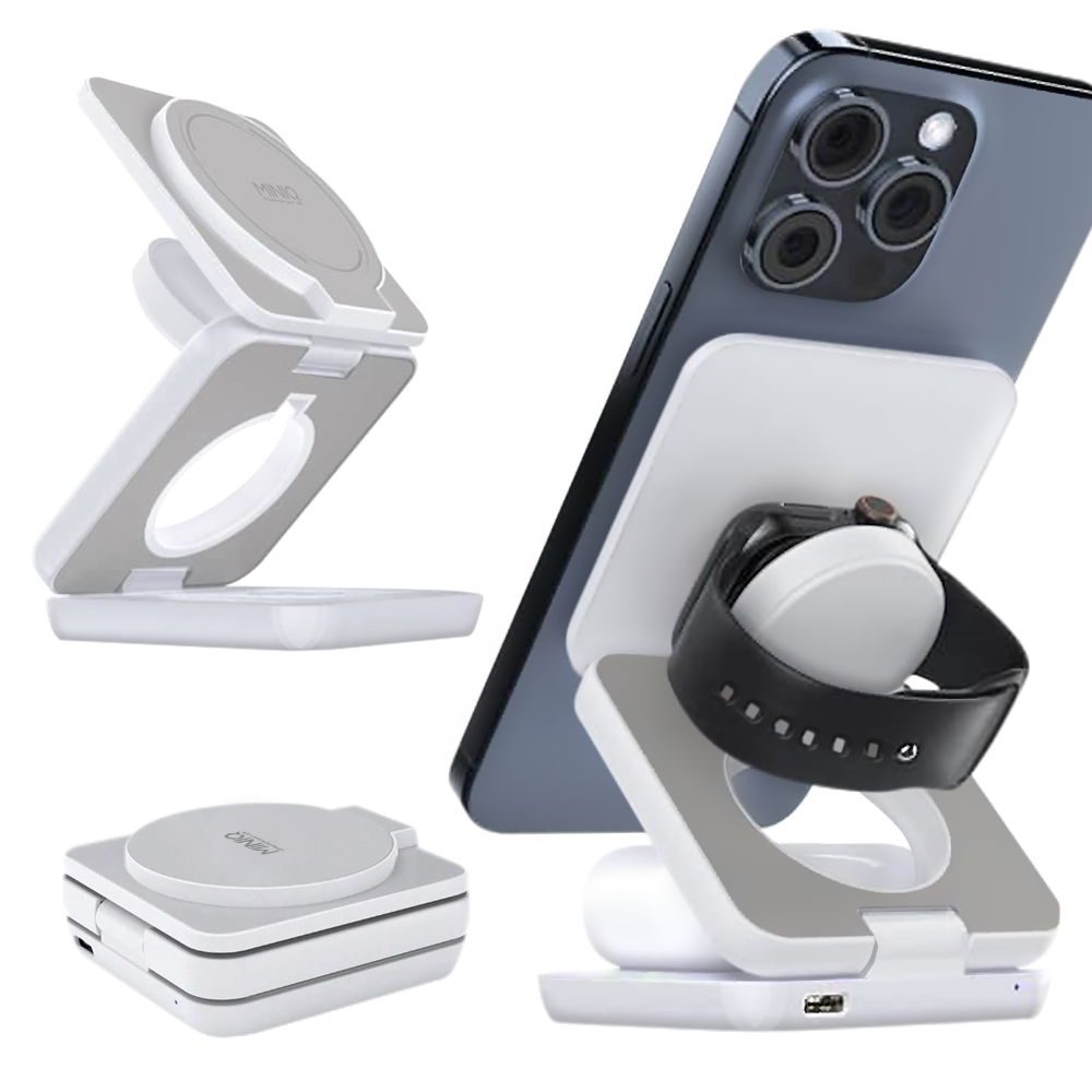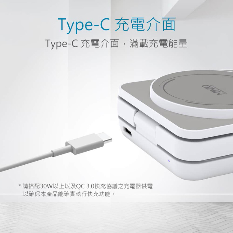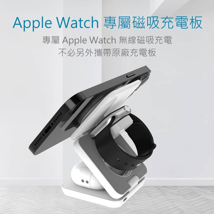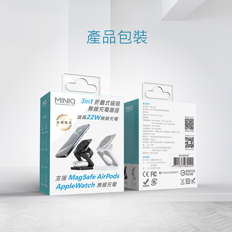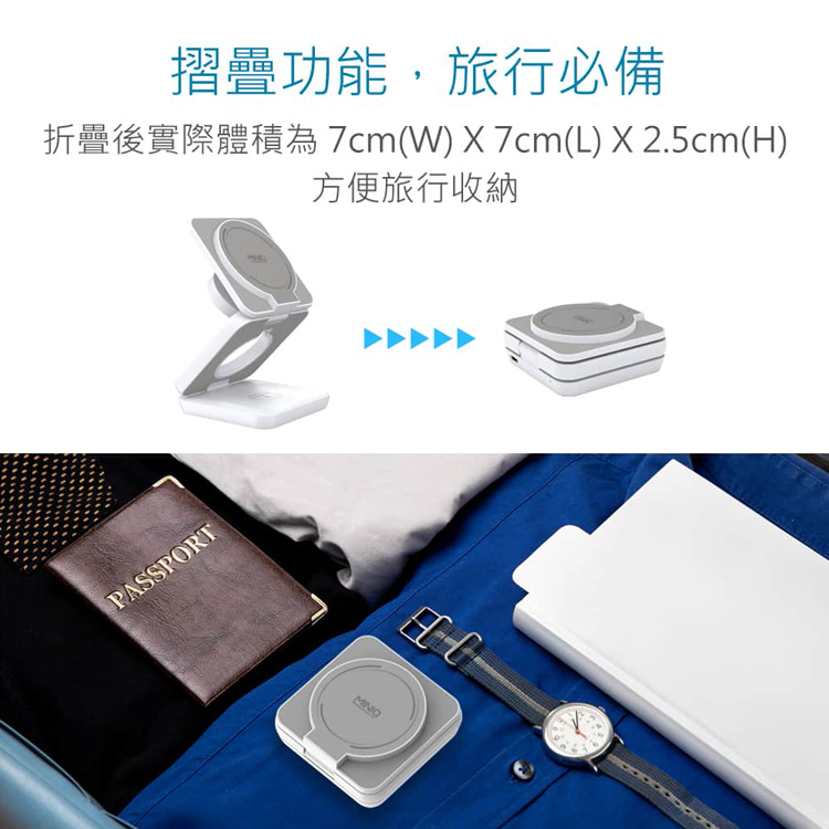 MiniQ WC-002 3合1折疊式磁吸充電座 無線充電座(附Type-C充電線)-白