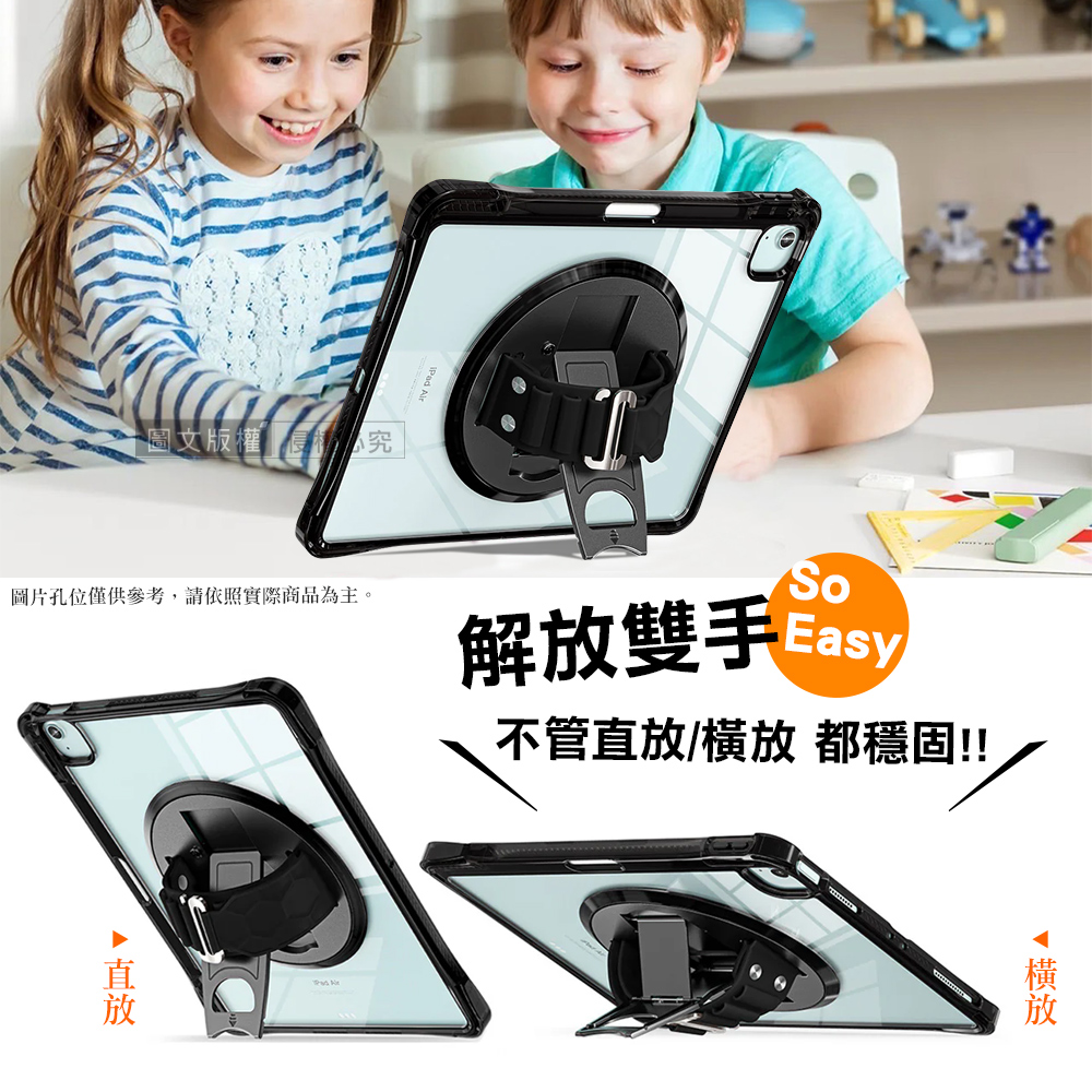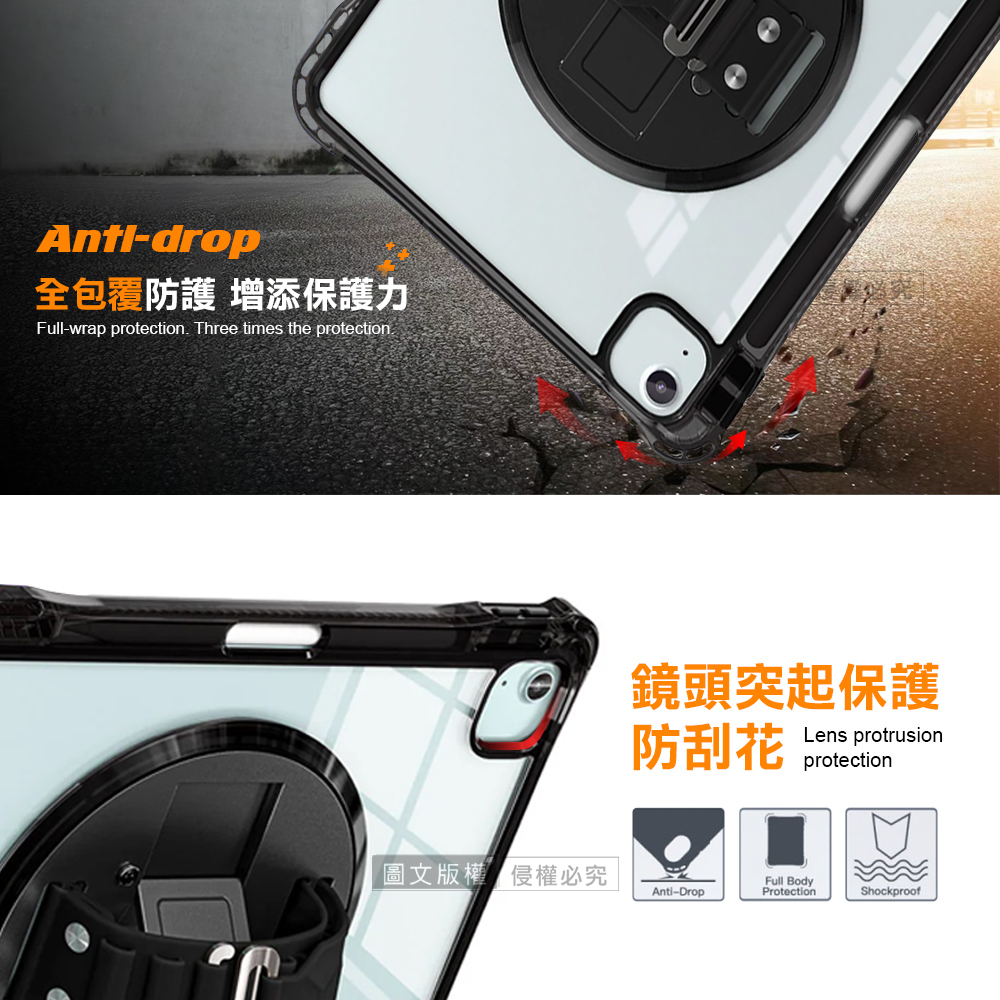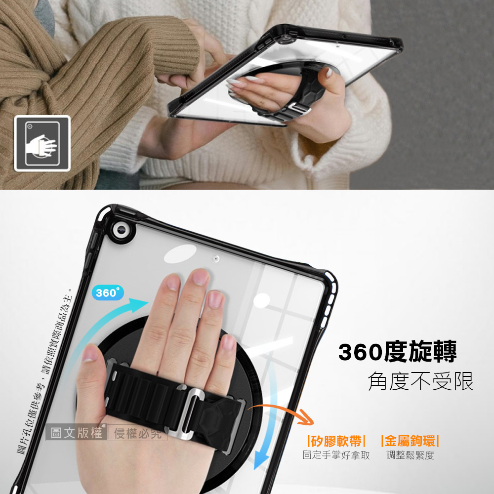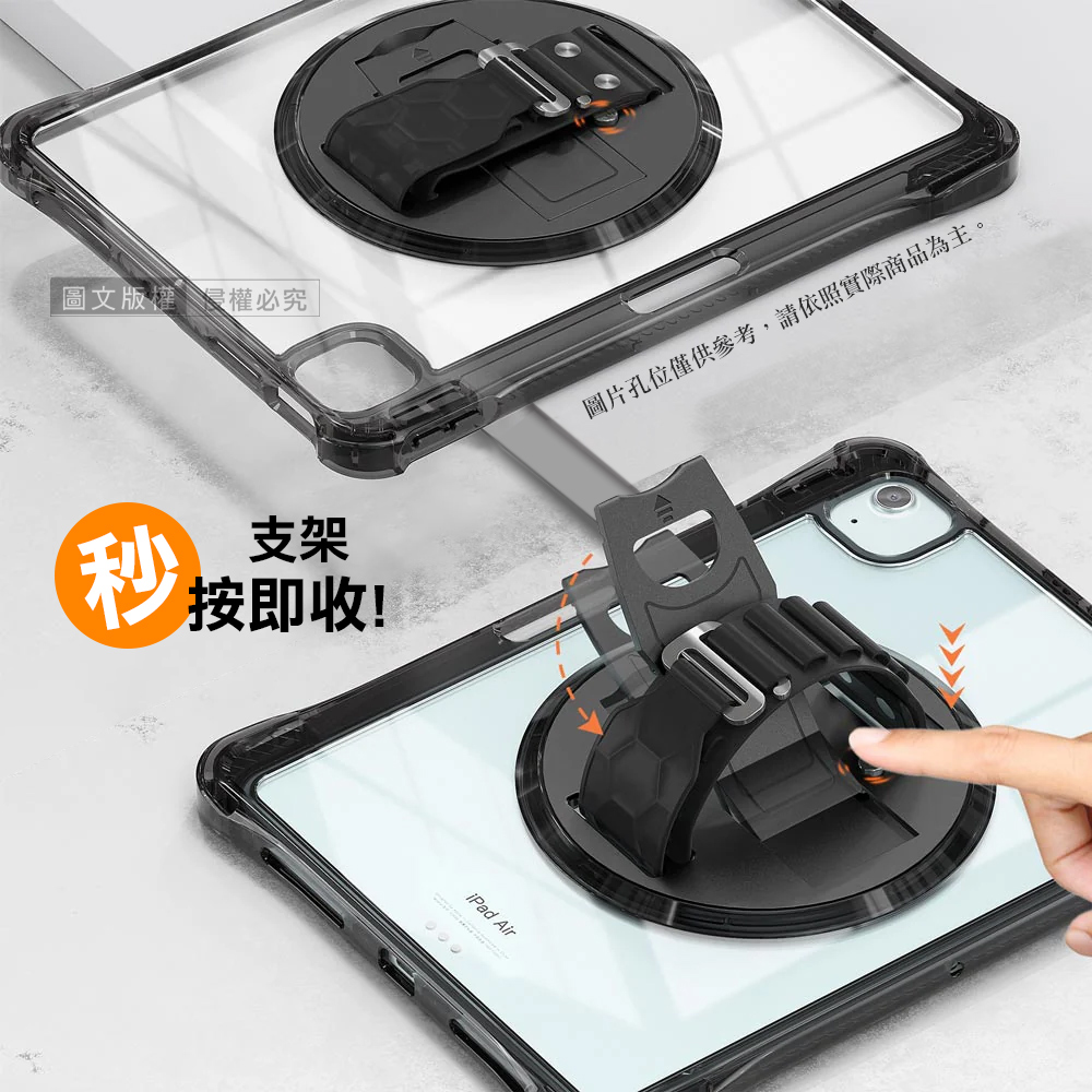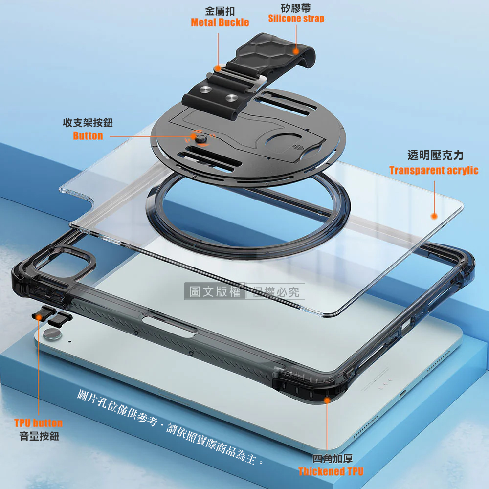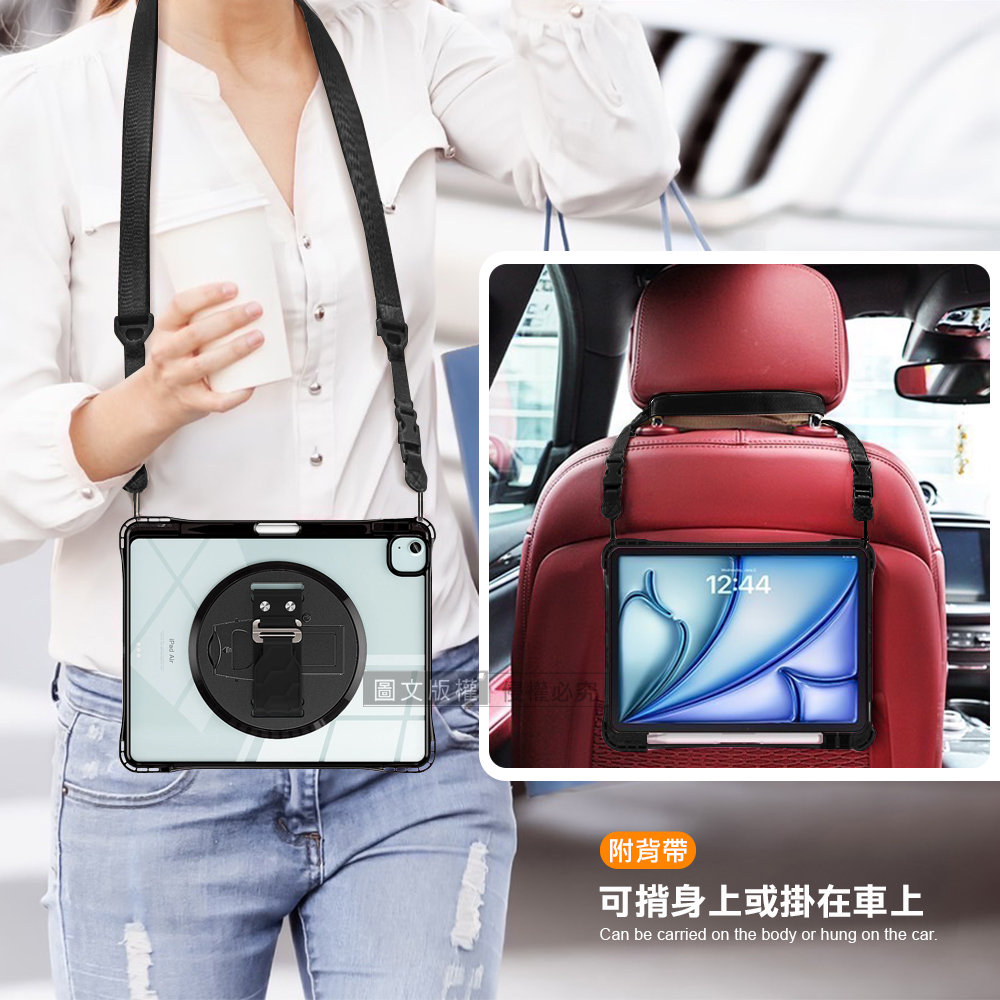 盔甲清透 2025/2024 iPad Pro 13吋 四角加固PC硬蓋防摔保護殼 秒收旋轉支架 附側背帶