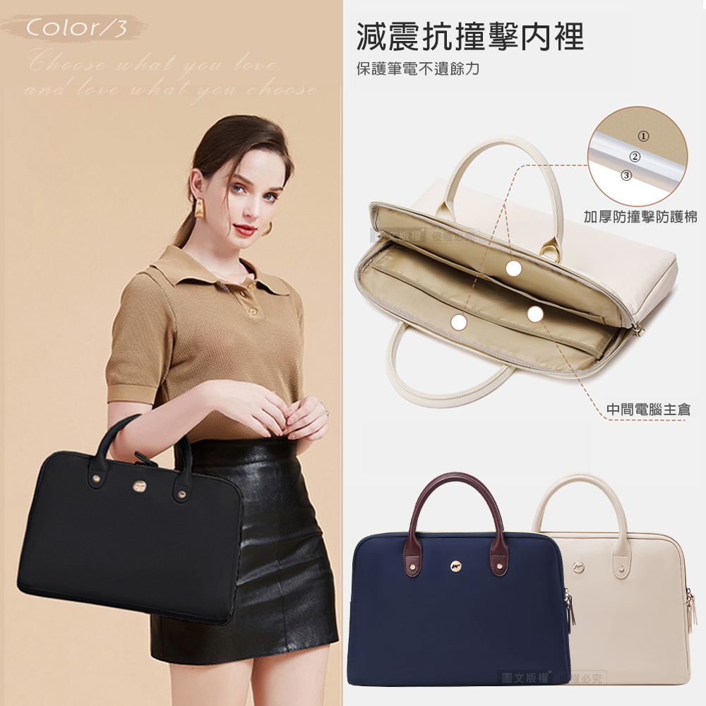 輕時尚 14吋 質感筆電MacBook公事包 內層緩衝防潑水 附背帶(杏色)