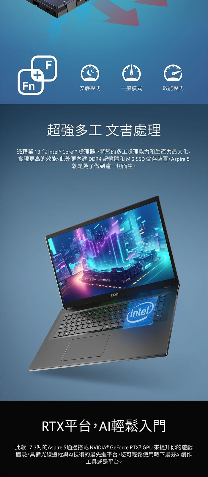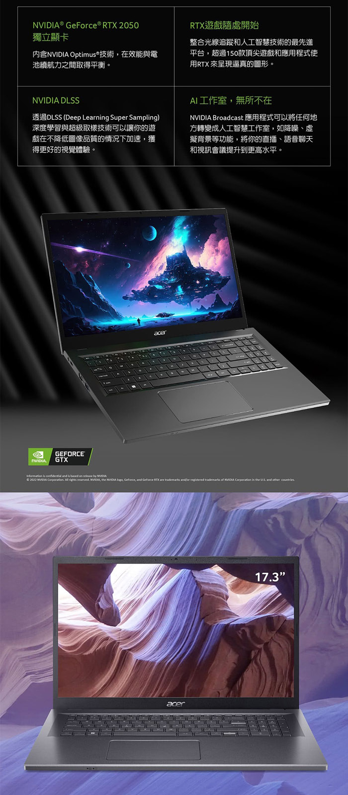 《Acer 宏碁》A517-58GM-59BB(17.3吋FHD/i5-1335U/8G+32G/512G SSD/RTX2050/Win11/特仕版)