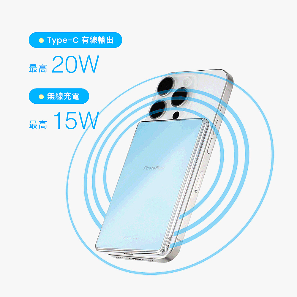 最新磁⼒對準技術,磁吸上立即⾃動充電