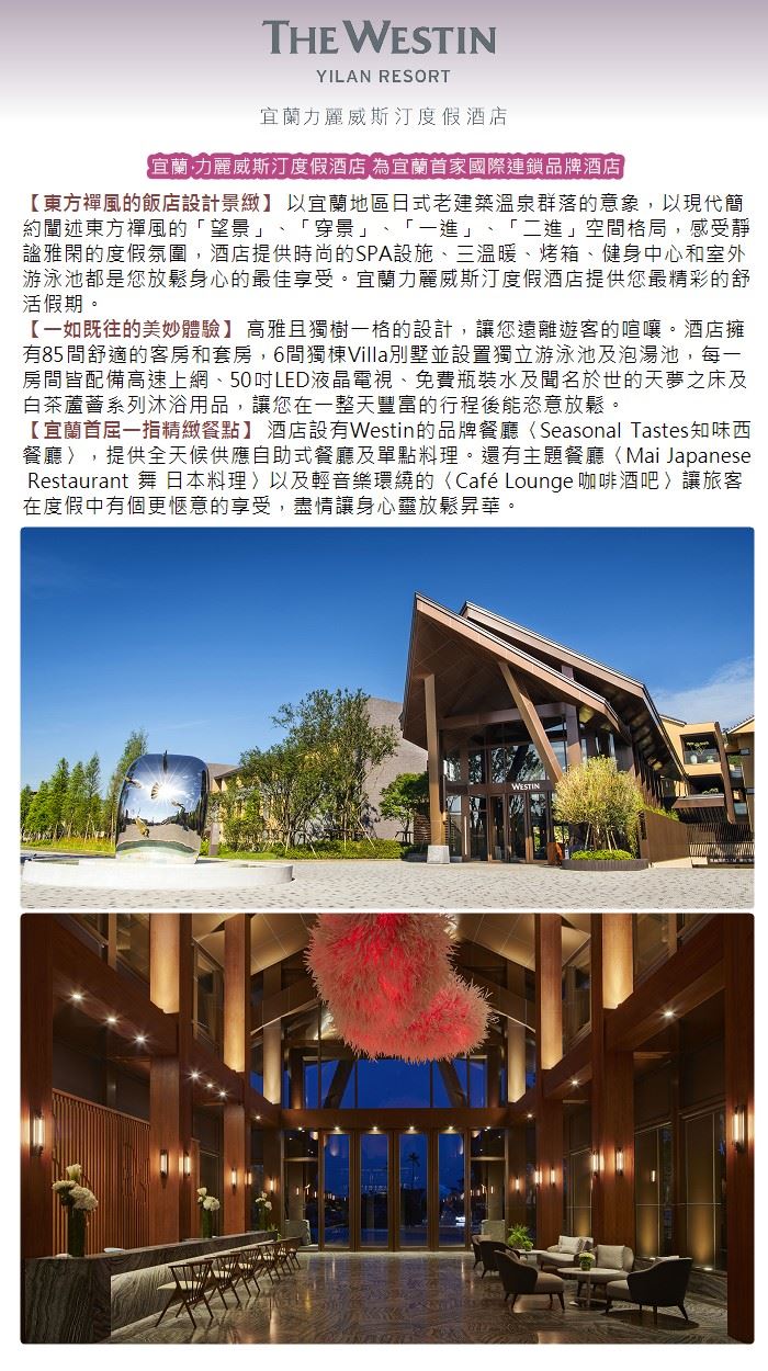 【宜蘭力麗威斯汀度假酒店】1人露天風呂裸湯泡湯券